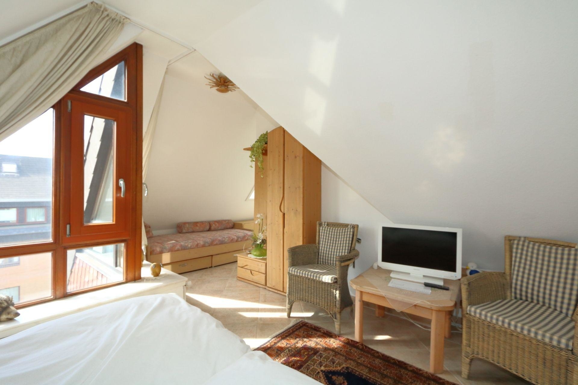 OG: Doppelbett 90 cm x 200 cm, Fernseher, Sessel, Schränke und Kommode