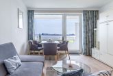 Nach einer erlebnisreichen Fahrradtour, können Sie den Abend entspannt mit einem Glas Wein ausklingen lassen und den traumhaften Meerblick aus Ferienwohnung Nautic 410 genießen.