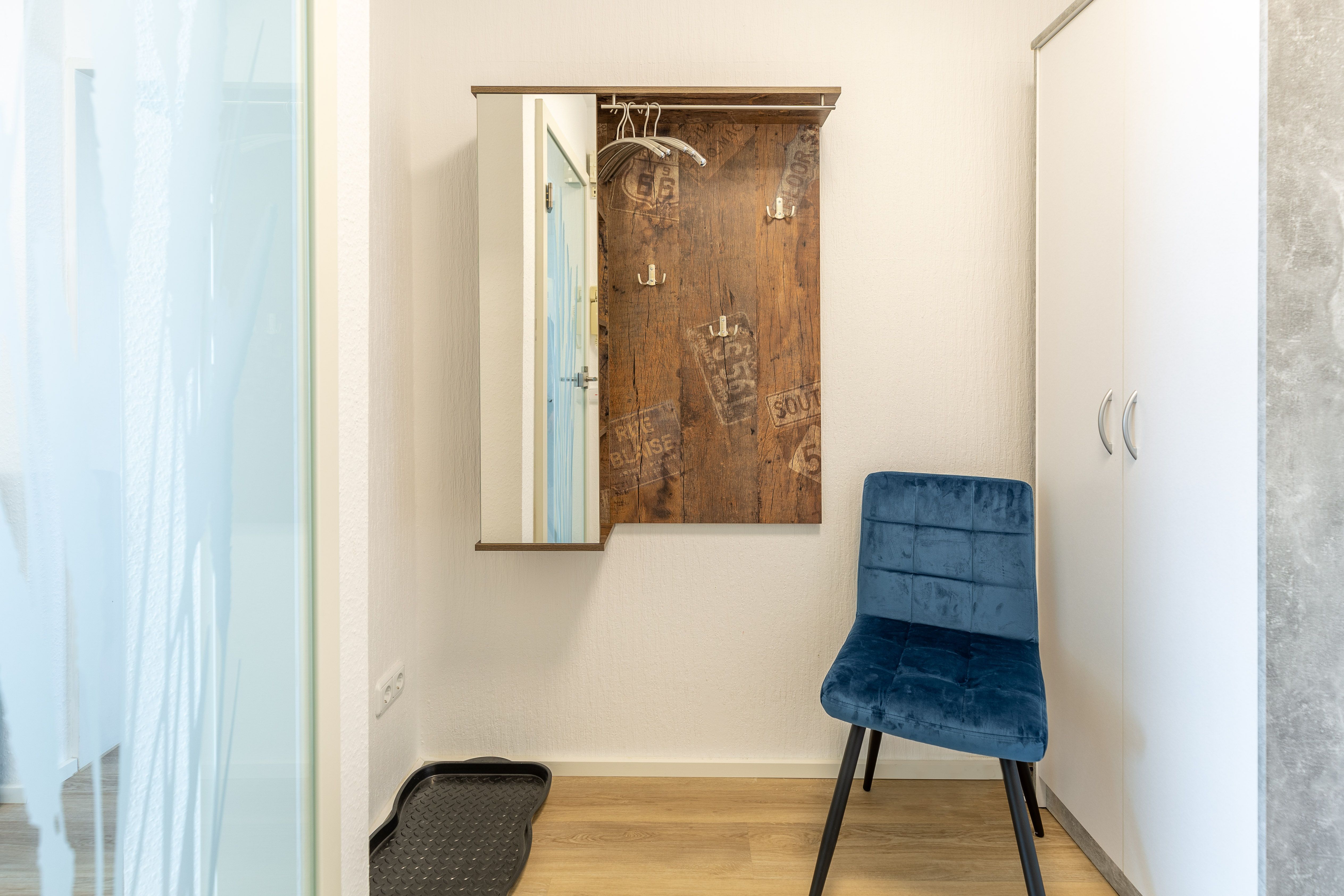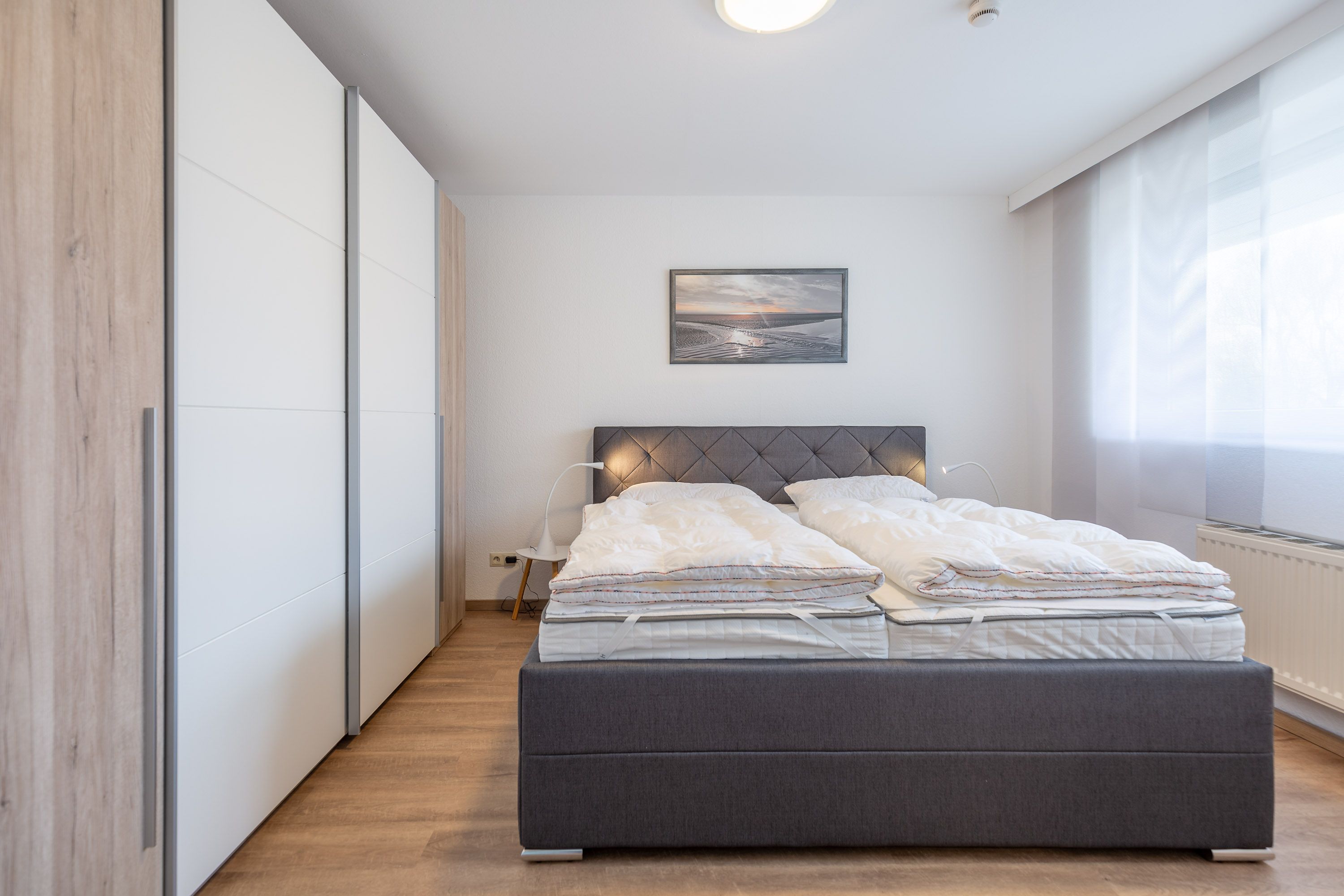 Das separate Schlafzimmer mit Doppelbett (2x90x200) gewährleistet, dass Sie sich auch im Schlaf erholen. Ein zusätzliches Schrankbett (90x200) im Wohnzimmer ermöglicht getrenntes Schlafen. Das Bad mit Dusche und WC verfügt über ein Fenster zum Belüften. Auf dem Südost-Balkon können Sie in der Sonne frühstücken und zugleich das Treiben auf dem Schifffahrtsweg beobachten.