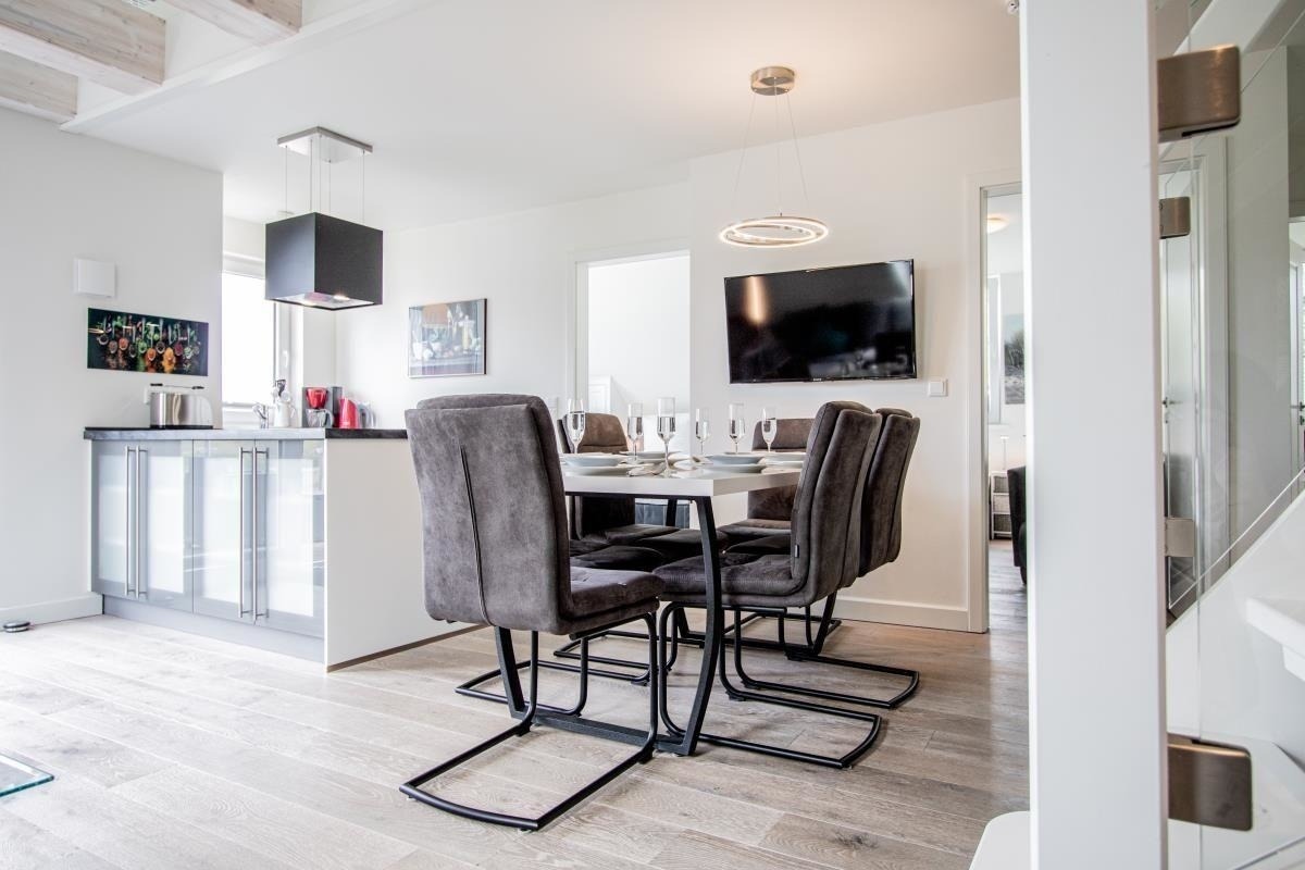 Die Ferienwohnung bietet großzügig gestaltete Räumlichkeiten für erholsame Tage. Sie verfügt über drei Schlafzimmer, ausgestattet mit sechs Doppelbetten und zwei Einzelbetten, ideal für Familien oder Gruppen. In der modernen Küchenzeile finden sich ein Elektro-/Gasherd, eine Mikrowelle, ein Kühlschrank, eine Kaffeemaschine und ein Toaster, um kulinarische Köstlichkeiten zuzubereiten. Für zusätzlichen Komfort sorgt die Gefriermöglichkeit. Die zwei Badezimmer sind mit Duschbad ausgestattet.