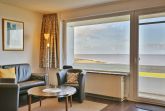 Mehr Cuxhaven geht nicht. Aus der Eck-Ferienwohnung in der 7. Etage genießen Sie einen spektakulären Meerblick, der seines gleichen sucht. Mächtige Schiffe ziehen vorbei, die Sonne zaubert glitzernde Lichtreflexe auf die Nordsee. Nach einem erlebnisreichen Tag können Sie sich entspannt zurücklehnen und den schönen Ausblick auf den Weltschifffahrtsweg, die Nordsee, die Insel Neuwerk, Sonnenuntergänge und die Kugelbake genießen. Darüber hinaus verfügt das Haus Atlantic über ein modernes Schwimmbad und eine Sauna.