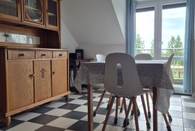 Die Küche ist voll ausgestattet mit einem Herd, einem Backofen, einem Kühlschrank, einer Kaffeemaschine und allen notwendigen Kochutensilien. Hier können Sie gemeinsam leckere Mahlzeiten zubereiten und am Esstisch im Wohnbereich genießen.