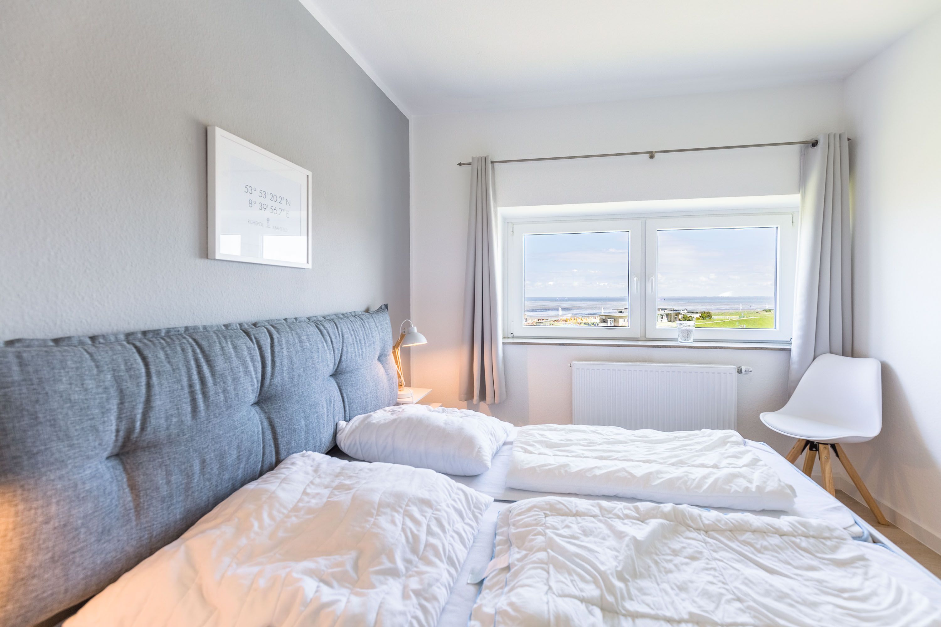 2 separate Schlafzimmer mit komfortablen Betten gewährleisten, dass Sie sich auch im Schlaf erholen. Die Eck-Ferienwohnung ist eine echte Rarität, denn aus der 5. Etage hat man einen besonders guten Ausblick. Beobachten Sie mächtige Schiffe, die Insel Neuwerk und traumhafte Sonnenuntergänge.