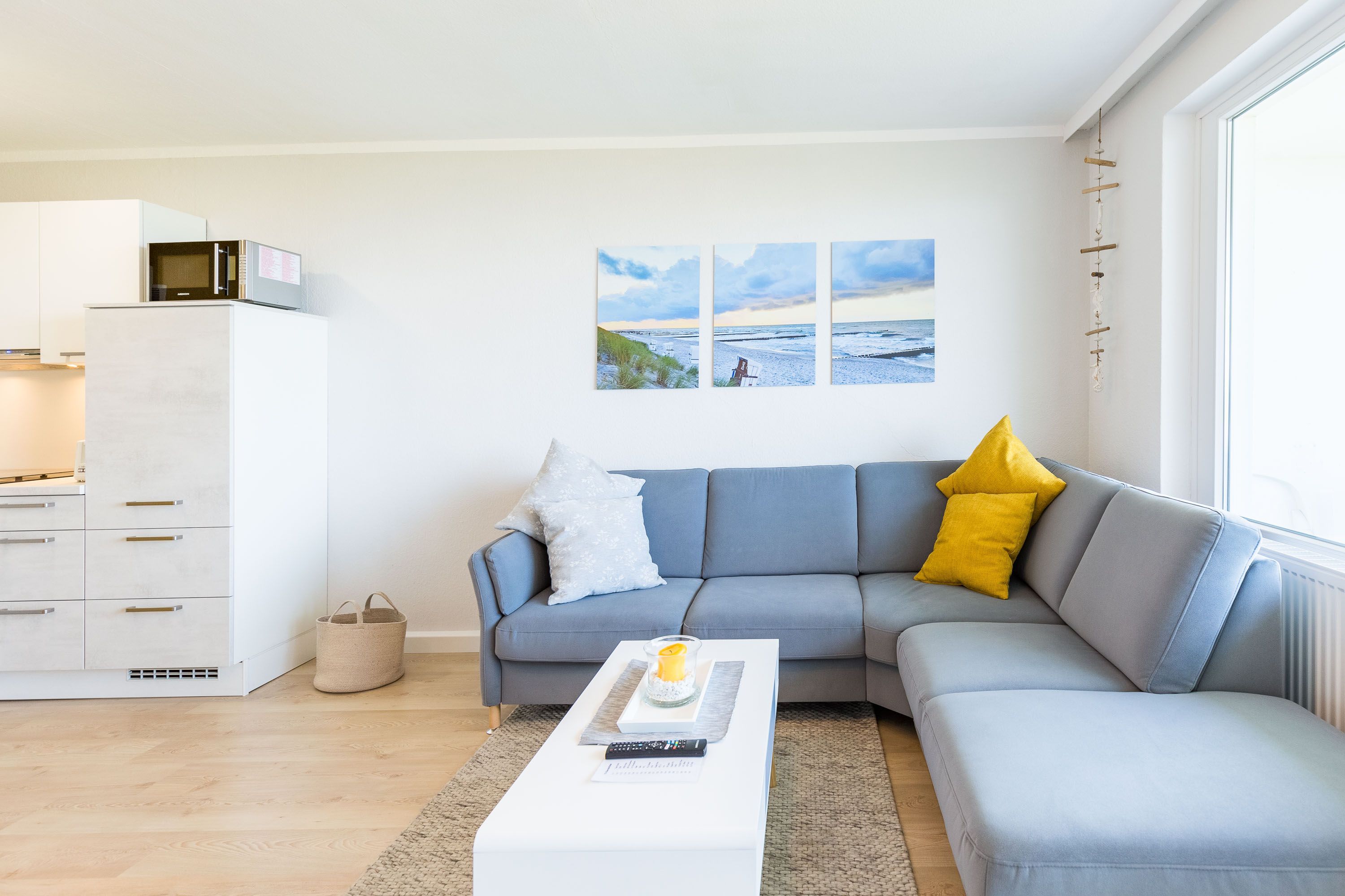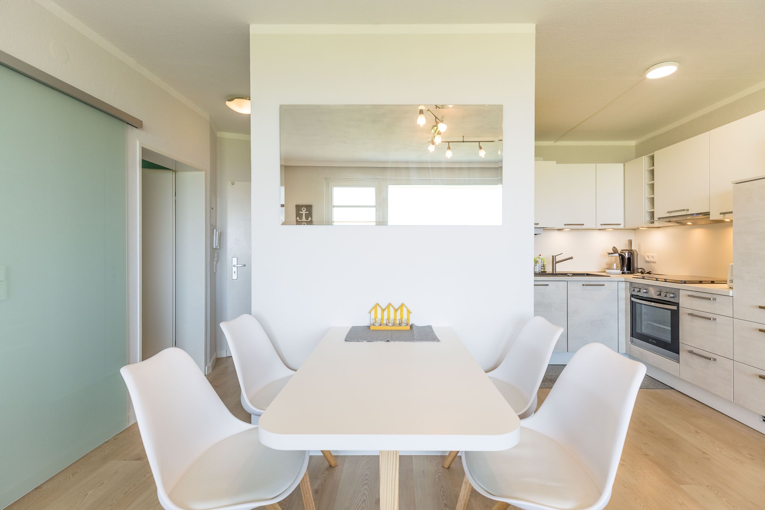 Schick, schick: Unsere 55 qm große 3-Zimmer Ferienwohnung mit Meerblick und Balkon bietet einen herrlichen Ausblick auf die Nordsee, die Insel Neuwerk und den Weltschifffahrtsweg. Schon morgens auf den Balkon treten, sich die raue Nordseeluft um die Ohren pusten lassen und auf die glitzernde Wasseroberfläche blicken einfach unbezahlbar. Und drinnen, da erwartet Sie ruhiges und modernes Design mit natürlichen Holzstrukturen, hellen, sanften Farben und skandinavisch-schlichten Einrichtungselementen. Perfekt für erholsame Tage am Meer.