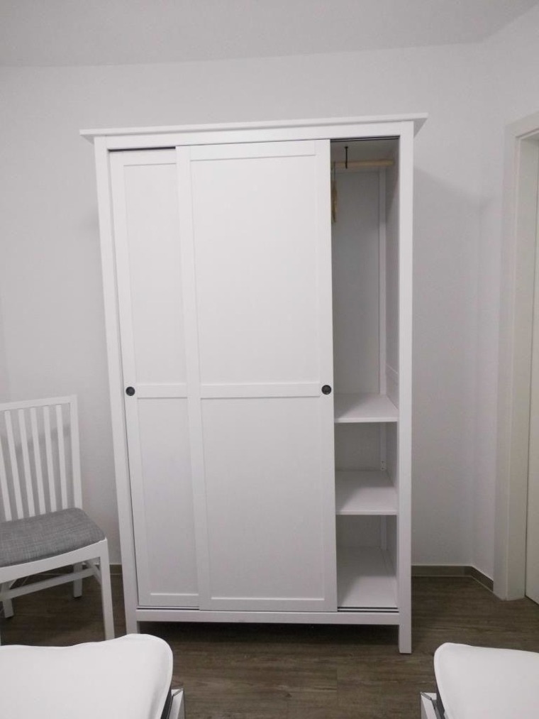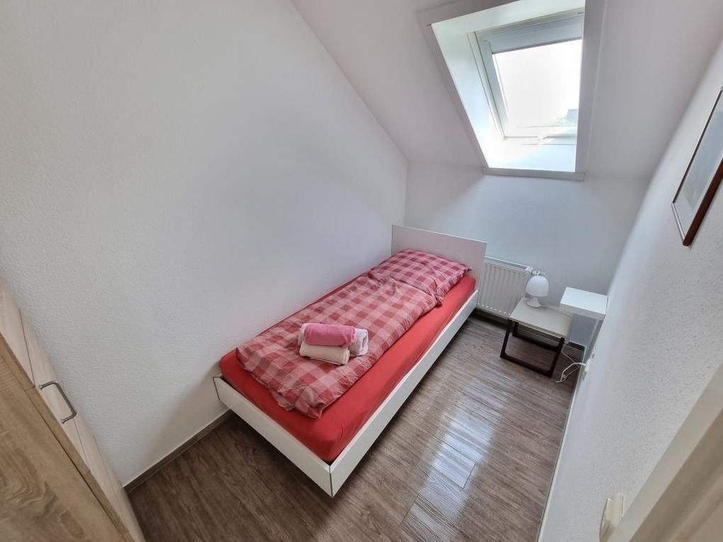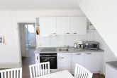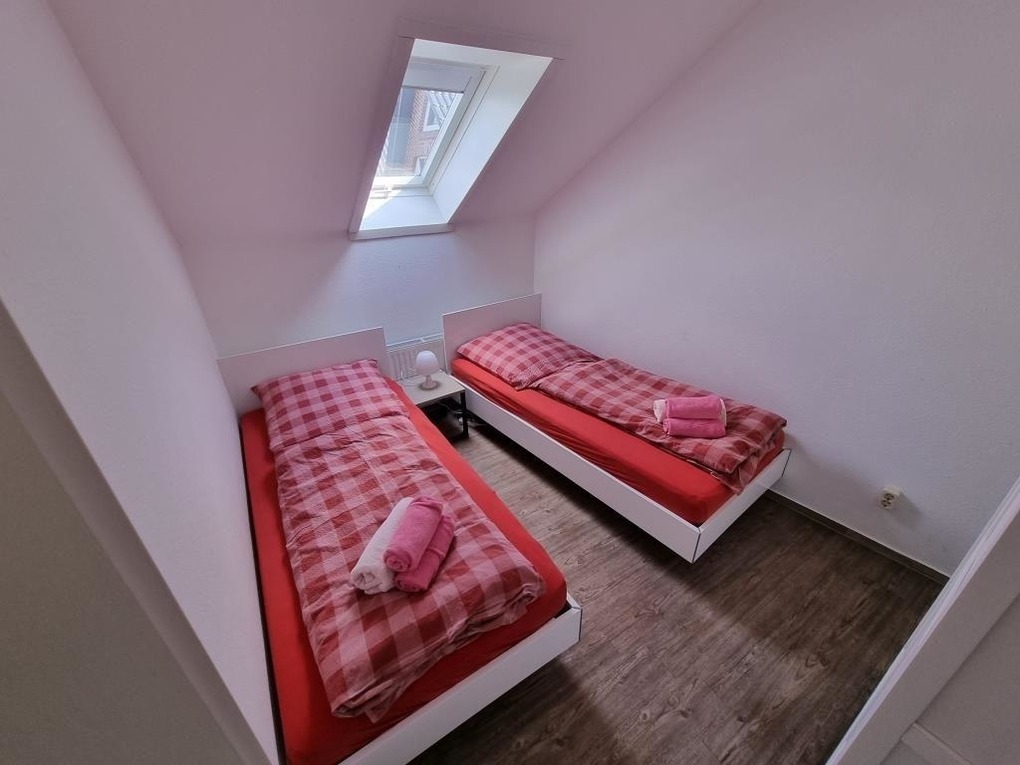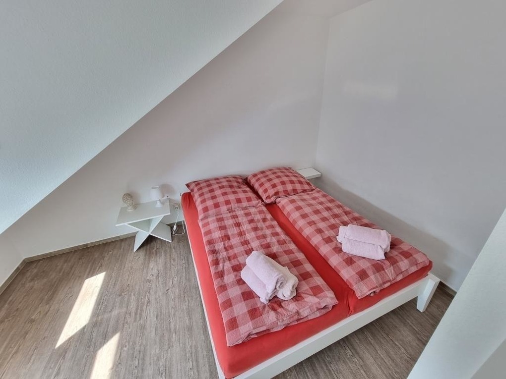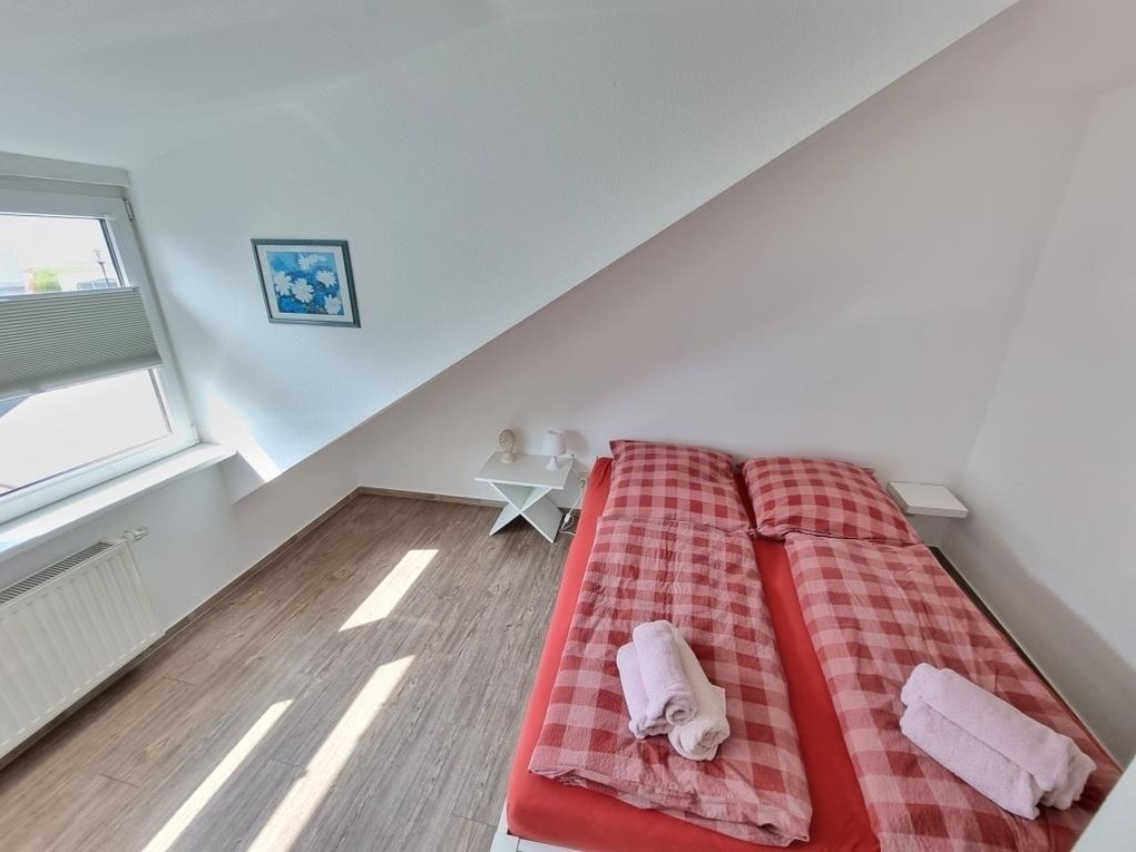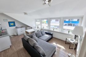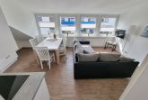 Schöne Ferienwohnung mit drei Schlafräumen mit einem Doppelbett 1,80mx2m, 2 Einzelbetten 0,90mx2m und einem Einzelbett 0,90mx2m, 1 Wohnraum mit Seesicht, Sofa, Küchenzeile mit Kühlschrank, Gefrierfach, Geschirrspüler, TV, 2xDusche / WC