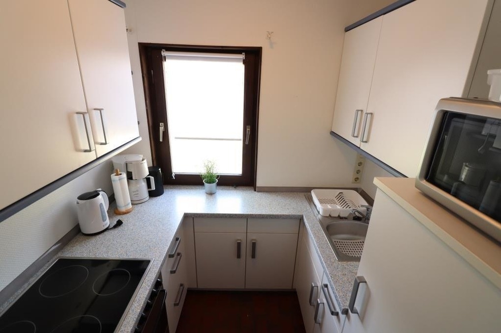 Die Wohnung verfügt über 1 Schlafraum mit Doppelbett 1,80mx2m, 1 Schlafraum mit einem Einzelbett 0,90mx2m, 1 Wohnraum mit Schlafsofa, TV, kleine separate Küche mit Küchenzeile, Backofen, Kühlschrank und Gefrierfach, Dusche/WC
