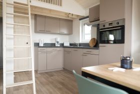 Ferienhaus mit rd. 29m² und Platz für bis zu vier Personen. Ein Schlafzimmer mit Boxspringbetten, zwei weitere Schlafmöglichkeiten finden Sie im Wohn- und Schlafbereich. Großer Wohnraum mit Küche, Sitzgelegenheiten und Unterhaltungsmedien (TV), dazu ein Badezimmer. Im Außenbereich gibt es einen Parkplatz für Ihr Auto und die Terrasse lädt zum gemütlichen Verweilen ein. Die Chalets befinden sich in einem eigenen Parkareal unseres Platzes mit eigener Zufahrt über den Campingplatz.