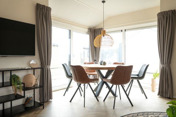 Ferienhaus mit rd. 52m² und Platz für bis zu sechs Personen. Drei Schlafzimmer (eins mit Doppelbett, eins mit zwei Einzelbetten und eins mit Etagenbett), ein Badezimmer, großer Wohnraum mit Küche, Sitzgelegenheiten und Unterhaltungsmedien (TV). Im Außenbereich gibt es einen Stellplatz für Ihr Auto und die Terrasse lädt zum gemütlichen Verweilen ein. Die Chalets befinden sich in einem eigenen Parkareal unseres Platzes mit eigener Zufahrt.