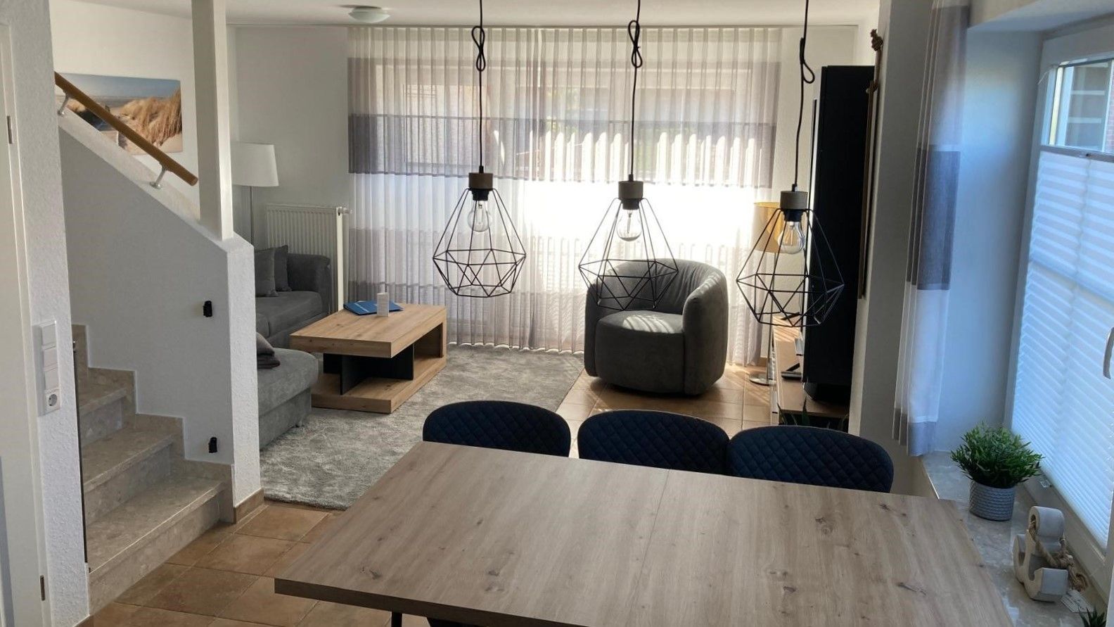 Wir freuen uns, Ihnen unser modernisiertes Ferienhaus Robbenplate Nr. 03 vorstellen zu dürfen. Im Frühjahr 2025 wurde es umfassend renoviert: Freuen Sie sich auf ein neues, bequemes Sofa mit gemütlicher Sitzecke, einen stilvollen Wohnzimmerschrank mit Ambientebeleuchtung sowie einen neuen Esstisch mit passenden Stühlen.