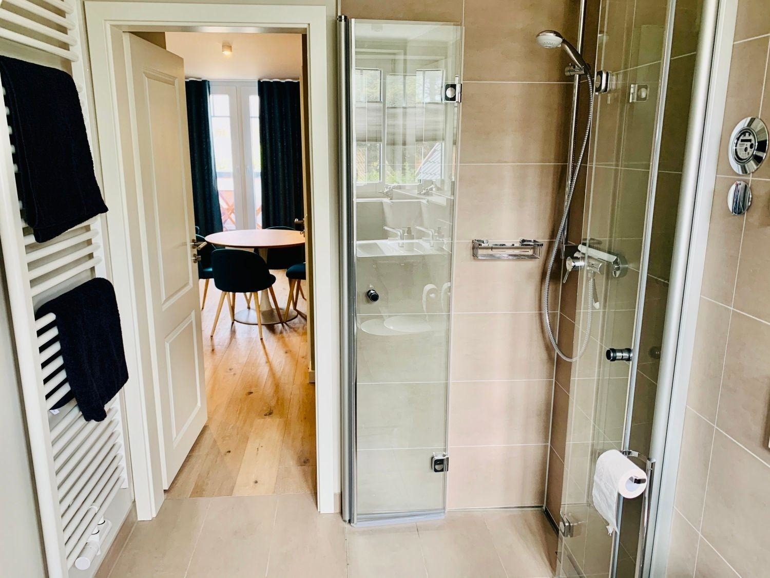 Modern eingerichtet bietet die Ferienwohnung Platz für bis zu 4 Personen. Die Wohnung liegt im Obergeschoss, erreichbar über das gepflegte Treppenhaus.