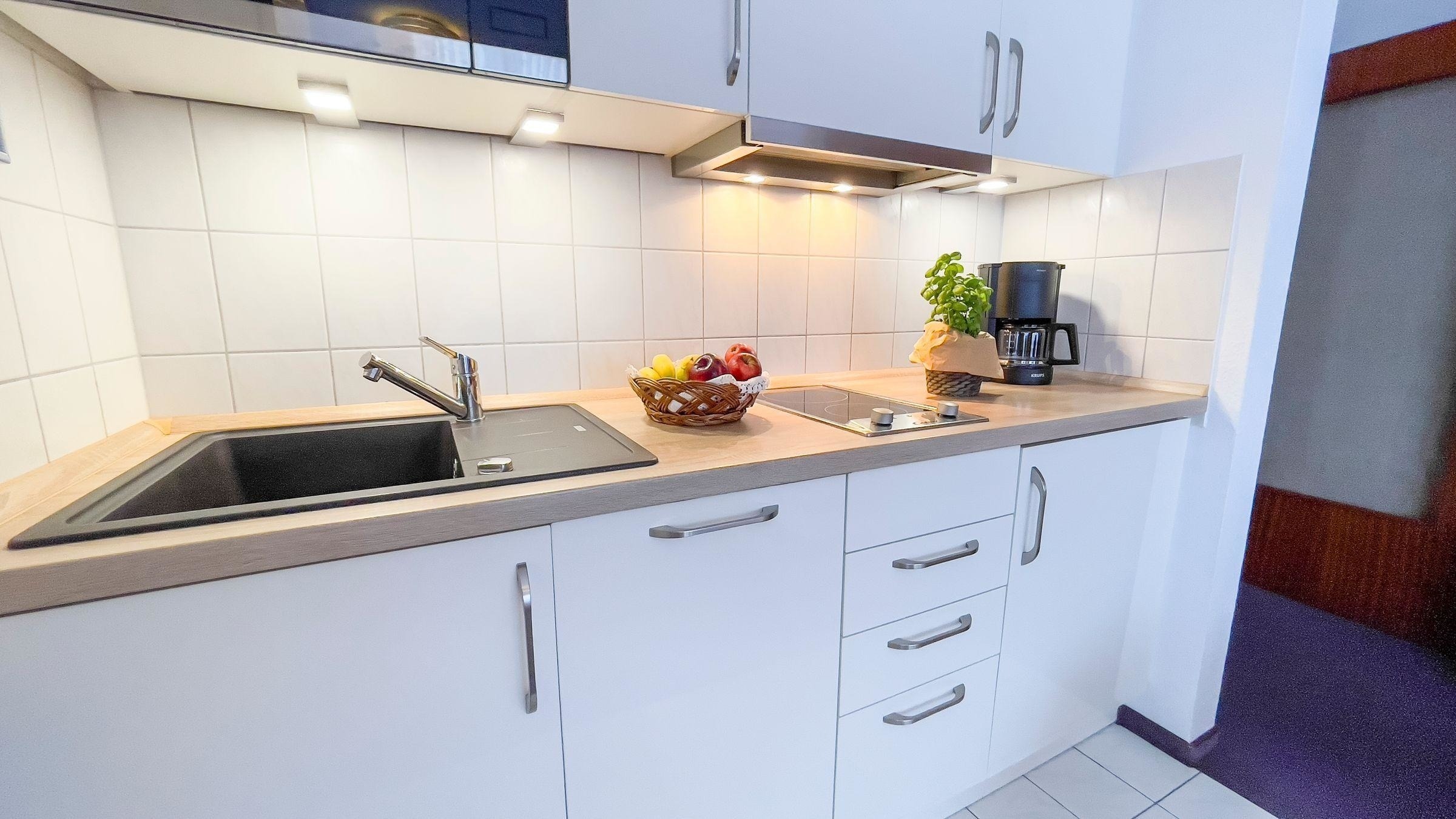 In dieser modernen Ferienwohnung erwartet die Gäste eine stilvolle und komfortable Ausstattung. Die offene Küche verfügt über einen Elektro- und Gasherd, einen Geschirrspüler, eine Mikrowelle, einen Kühlschrank sowie eine Kaffeemaschine und einen Toaster, wodurch die Zubereitung von Speisen zum Vergnügen wird. Das Wohnschlafzimmer bietet Platz für Entspannung mit einem Sofa und Sessel sowie einem TV. Zwei Doppelbetten in einem Schlafzimmer garantieren erholsame Nächte. Das Duschbad ist funktional und einladend. Die Wohnung ist allergikergeeignet und mit kostenlosem WLAN ausgestattet. Ein Esstisch lädt zu gemeinsamen Mahlzeiten ein. Für zusätzlichen Komfort stehen Waschmaschine, Wäschetrockner, Wasserkocher und Rauchmelder zur Verfügung. Ein Parkplatz ist ebenfalls vorhanden. Die gemeinschaftlichen Bereiche bieten Raum für gesellige Stunden. Diese Ferienwohnung bietet alles, was für einen angenehmen Aufenthalt nötig ist.