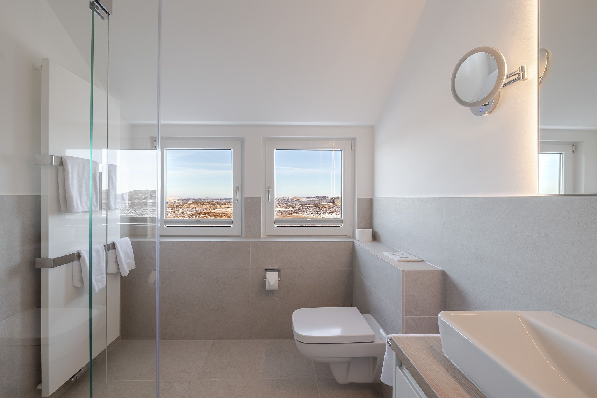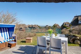 Ihr Reetdach-Traum auf Sylt! Das schön renovierte und freistehende Haus Meerblick befindet sich im malerischen Lister Ortsteil Mellhörn. Hierbei handelt es sich um ein ruhiges und stilvolles Reetdachhaus-Wohngebiet, das direkt am Wattenmeer zwischen Kampen und List auf Sylt liegt. Da Ihr Ferienhaus auf einer kleinen Anhöhe steht, können Sie auf der einen Seite den Meerblick (in der Ferne sieht man die dänische Küste) und auf der anderen Seite einen phantastischen, unverbauten Blick in die beeindruckende Lister Dünen- und Heidelandschaft genießen. Bis zum familiengerechten Lister Oststrand auf der Wattseite ist es nur ein kurzer Fußweg von 160m. Der Strand lädt zum Entspannen, Baden (im Sommer Überwachung durch Rettungsschwimmer), Spazieren gehen und natürlich zum Genuss des herrlichen Sylter Sonnenuntergangs ein. Direkt am Strand befindet sich das Strandbar-Restaurant Lister Austernperle sowie eine Strandkorbvermietung. Das Reetdach-Haus weist eine Wohnfläche von 120 m² auf zwei Ebenen auf und ist für bis zu 4 Personen geeignet. Das große und helle Wohnzimmer ist mit einem Smart-TV ausgestattet. Vom Wohnzimmer aus gelangen Sie auf die großzügige Terrasse mit Meerblick und in den Garten, in dem ein Strandkorb (in der Saison) für Sie bereitsteht. Zudem verfügt das Ferienhaus im Erdgeschoss über eine separate, komplett ausgestattete Küche mit Esstisch und ein geräumiges Duschbad, welches Anfang 2026 vollständig erneuert und modernisiert wurde. Ein weiteres Duschbad mit sehr schöner Aussicht auf die Dünen- und Heidelandschaft erwartet Sie im Obergeschoss des Hauses; auch dieses Badezimmer wurde Anfang 2026 vollständig erneuert und modernisiert. Im Obergeschoss befinden sich auch die beiden Schlafzimmer mit jeweils einem Kingsize Boxspringbett (180 x 200 cm). In einem der beiden Schlafzimmer steht ein kleiner Schreibtisch zu Ihrer Verfügung. Das Ferienhaus verfügt über ein sehr schnelles WLAN (Glasfaseranschluss), einen privaten Parkplatz und eine Waschmaschine.