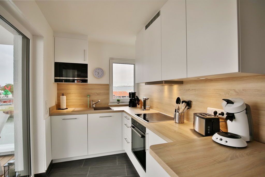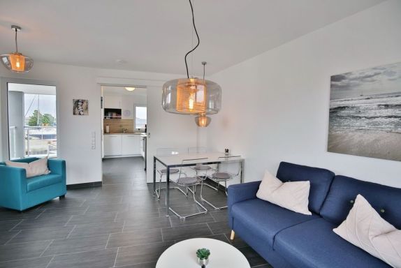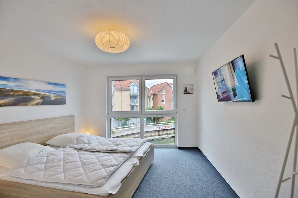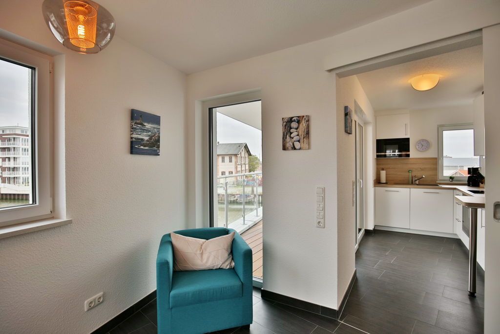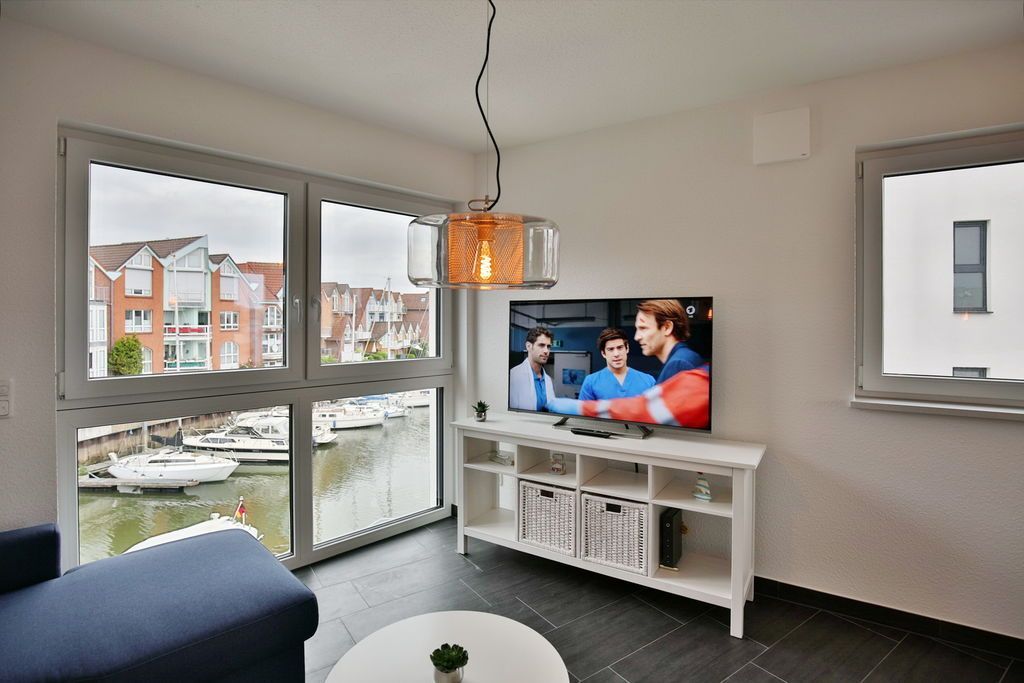 Traumhafter Blick in die City Marina! 2-Raum-Wohnung für max. 3 Pers. in der 2.Etage mit überdachtem Balkon (nord-ost). Voll ausgestattete Küchenzeile mit Backofen, Geschirrspüler etc.. Wohnzimmer mit Schlafsofa, 2xTV, kostenloses W-Lan, Schlafzimmer mit Doppelbett, Badezimmer mit ebenerdige Dusche/WC, Föhn, alle Fenster mit elktr. Rollläden, Aufzug, Waschmaschine/Trockner i.d. Wohnung, Stellplatz #6 und großer separater Abstellraum mit E-Bike Lademöglichkeit, keine Haustiere und natürlich Nichtraucher.