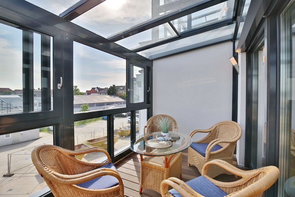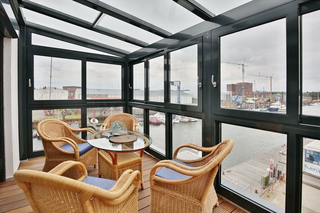 Exklusiver Luxusneubau direkt am Wasser für bis zu 6 Personen auf 3 Etagen. EG: Großzügiges Wohnzimmer mit TV und angrenzendem Wintergarten (süd), offene Küche mit Vollausstattung, Gäste-WC und Garderobe. 1.OG: 2 Schlafzimmer mit Doppelbetten und TV, Bad mit Wanne/Dusche/WC und eigener Sauna mit Blick auf die Boote im Yachthafen, Abstellraum mit Waschmaschine und Trockner. 2.OG: Lichtdurchflutete Lounge mit TV, Ecksofa (kann als Doppelbett gestellt werden kann), separates Relax-Sofa, kleiner Balkon (nord) und einem großen Wintergarten (süd). Alle Räume verfügen über eine Fußbodenheizung, kostenfreies W-Lan, Fahrradschuppen mit eBike-Station, ein KFZ-Stellplatz direkt am Haus.