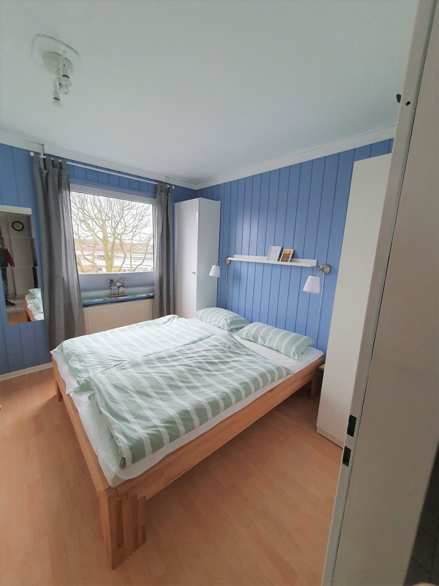 Die Ferienwohnung bietet eine einladende und allergikerfreundliche Umgebung, ideal für einen erholsamen Aufenthalt. Sie umfasst zwei Schlafzimmer, ausgestattet mit einem Doppelbett und einem Einzelbett. Der offene Wohnbereich lädt zum Entspannen ein und verfügt über ein Sofa sowie einen Sessel.