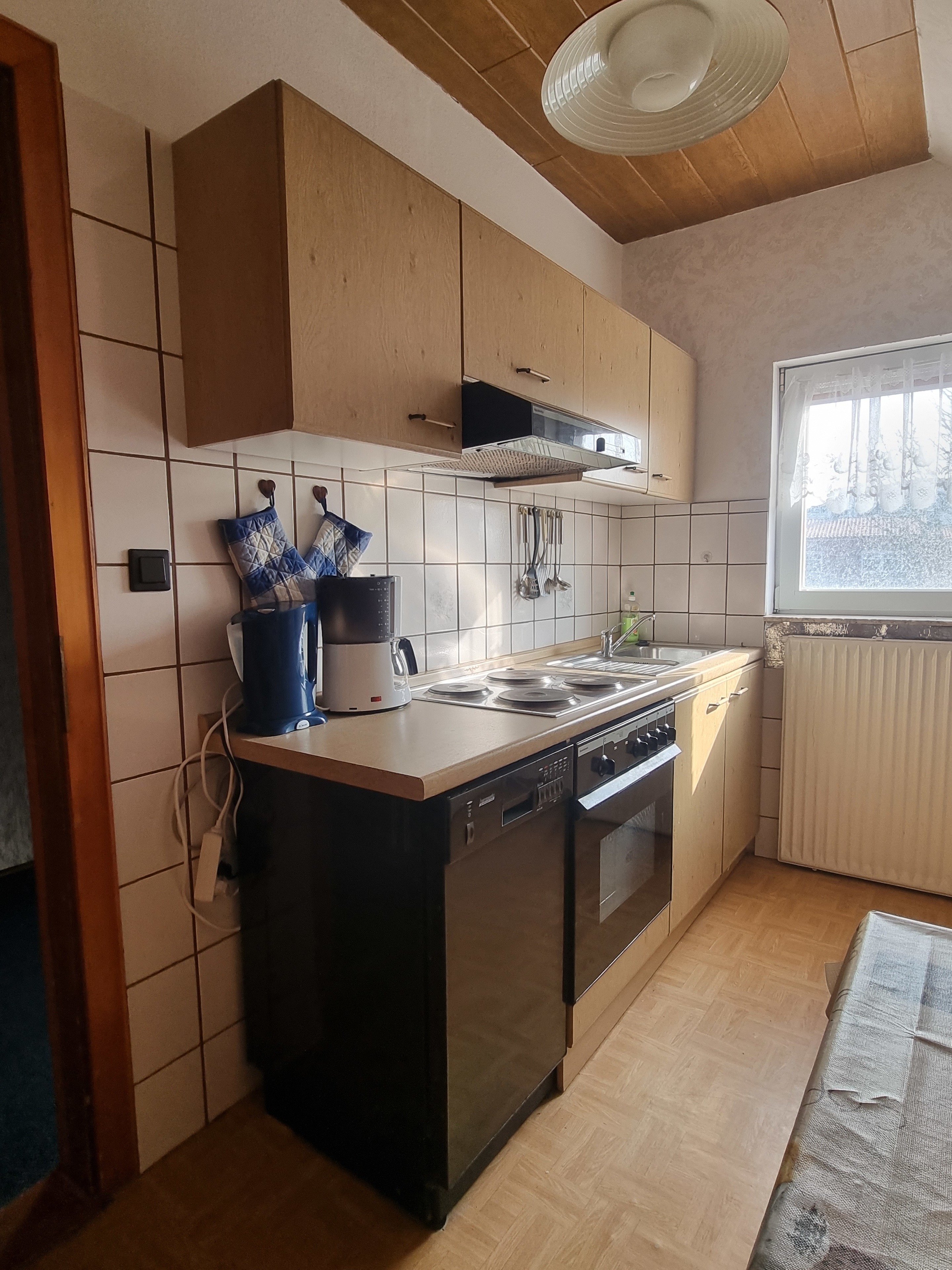 Die Ferienwohnung befindet sich im 1.Obergeschoß und ist 55 qm groß. Im Schlafzimmer ist ein Doppelbett und ein Kleiderschrank. Für kleine Kinder stehen Kinderreisebett und Hochstuhl bereit. Ein 2. Fernseher befindet sich auch im Schlafzimmer .Im Wohnzimmer steht ein Sofa von dem sie gemütlich Fernseh schauen können. Ein Schrankbett von 1,40 x 2,00 m steht mit im Wohnzimmer. Vom Wohnzimmer aus kann man direkt auf den Balkon gehen. In der Küche ist ein Herd mit Backofen, Kaffeemaschine, Wasserkocher, Mikrowelle, Kühlschrank, kleiner Gefrierschrank , kleine Spülmaschine sowie weiteres Zubehör was zur Zubereitung Ihrer Urlaubsmahlzeiten benötigt wird .Das Badezimmer ist mit WC und Dusche ausgestattet.