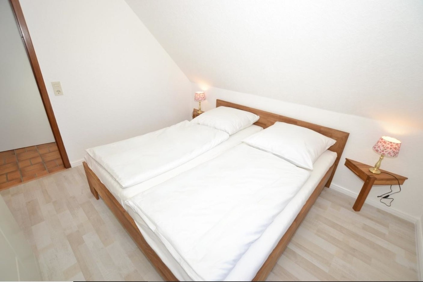 Die im Obergeschoss gelegene, ca. 67 m² große Ferienwohnung besticht durch ihre helle und gehobene Einrichtung und bietet Platz für bis zu 5 Personen. Sie ist perfekt für Familien oder Freunde, die gemeinsam eine entspannte Auszeit genießen möchten. In den zwei gemütlichen Schlafzimmern finden Sie je ein komfortables Doppelbett (180x200 cm, getrennte Matratzen), die für erholsame Nächte sorgen.