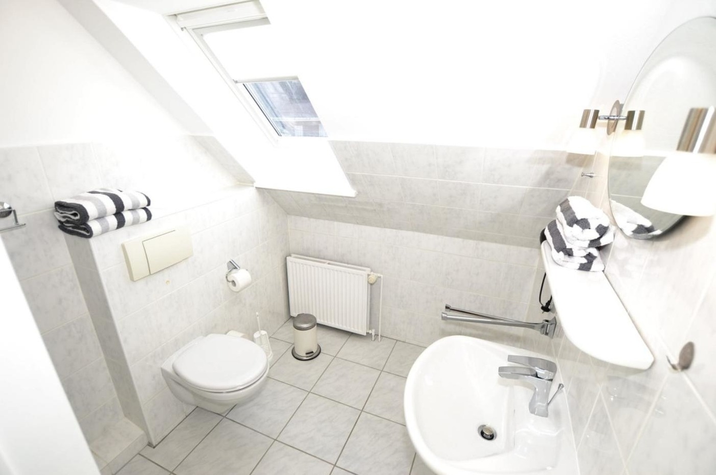 Das moderne Badezimmer ist mit einer Dusche und einem WC ausgestattet und sorgt für zusätzlichen Komfort während Ihres Aufenthalts.