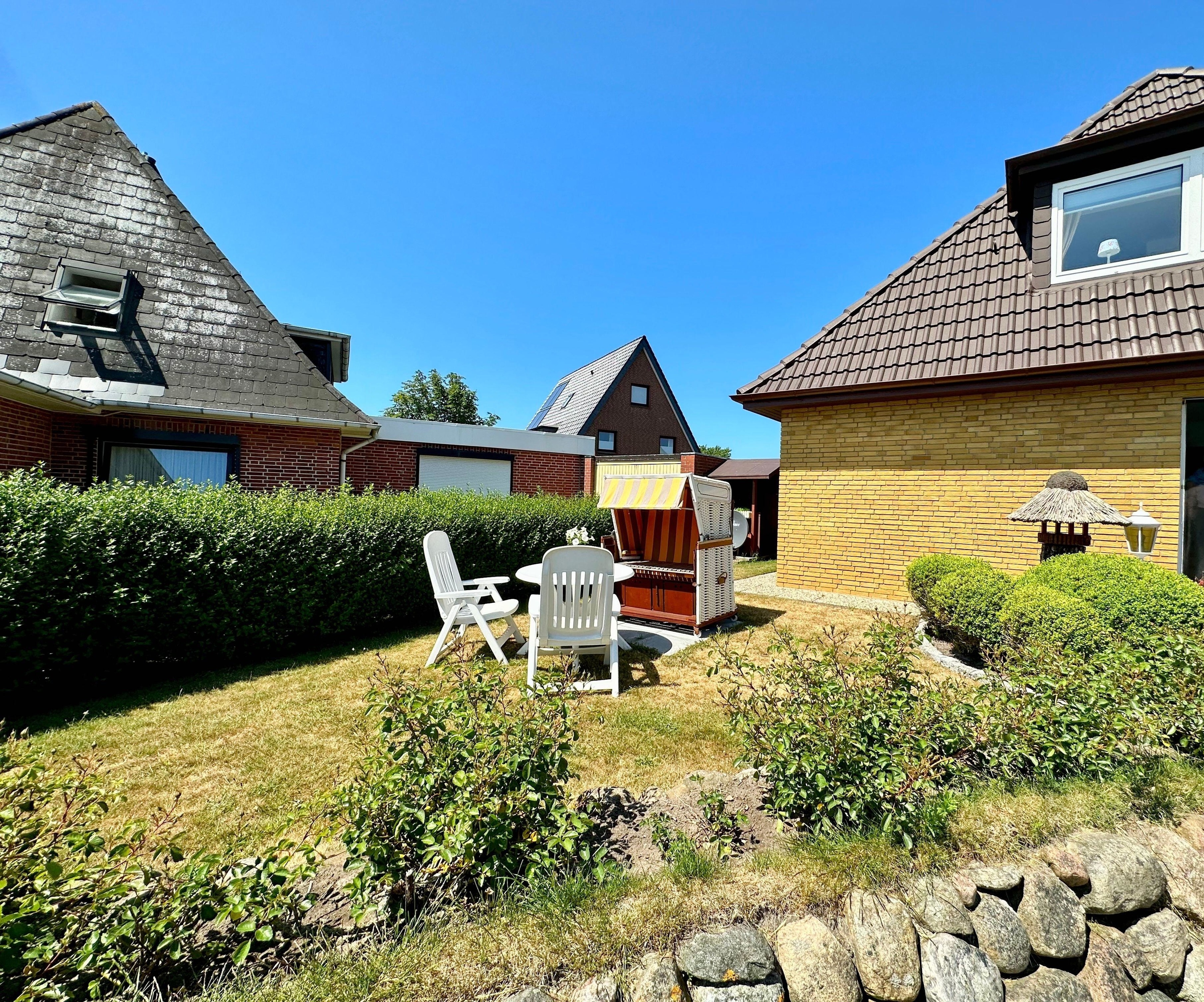 Genießen Sie sonnige Tage im eigenen Gartenanteil mit einem gemütlichen Strandkorb – ein perfekter Ort, um die frische Meeresbrise zu genießen und die Seele baumeln zu lassen. Ihr Auto parken Sie bequem auf dem eigenen Stellplatz.
