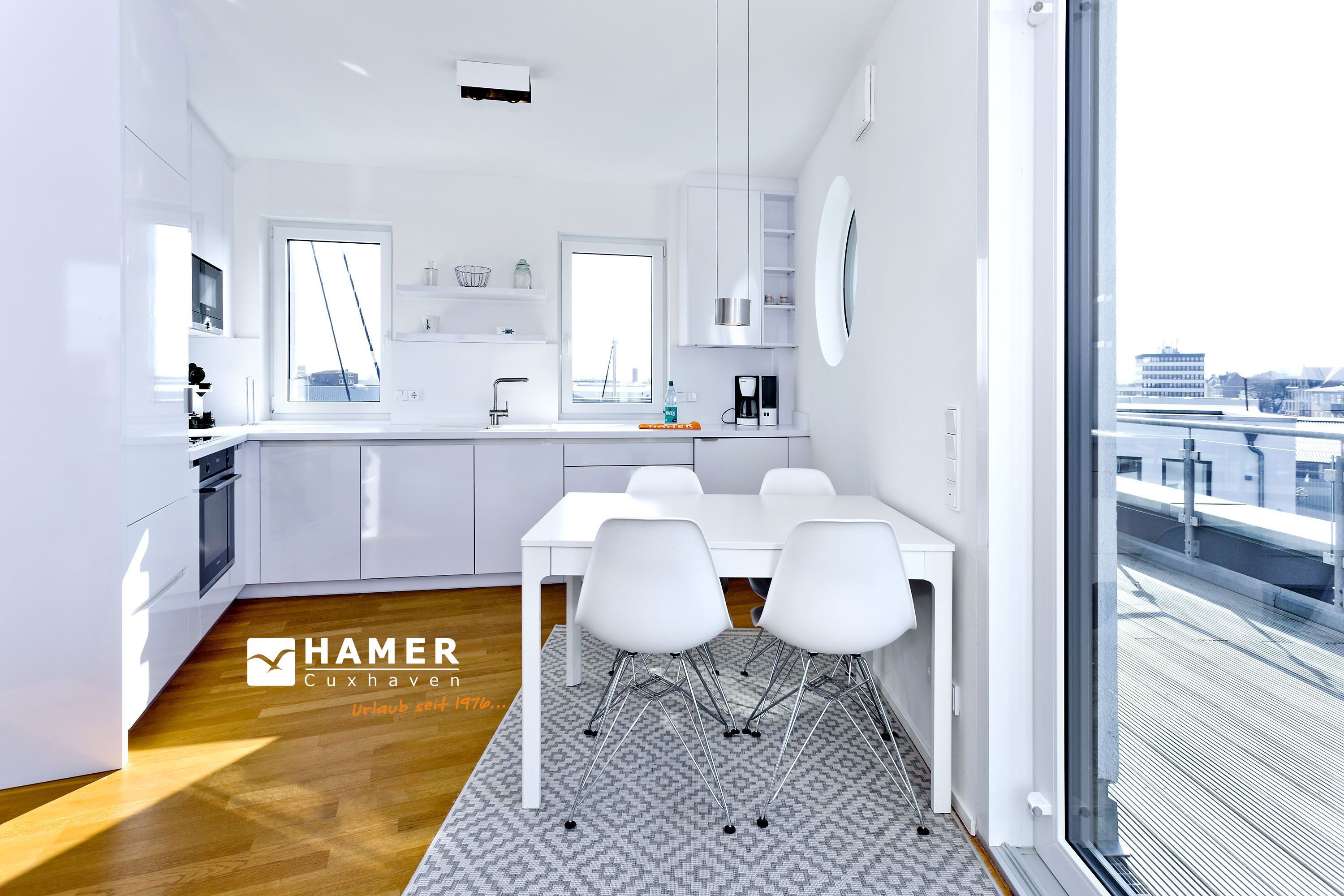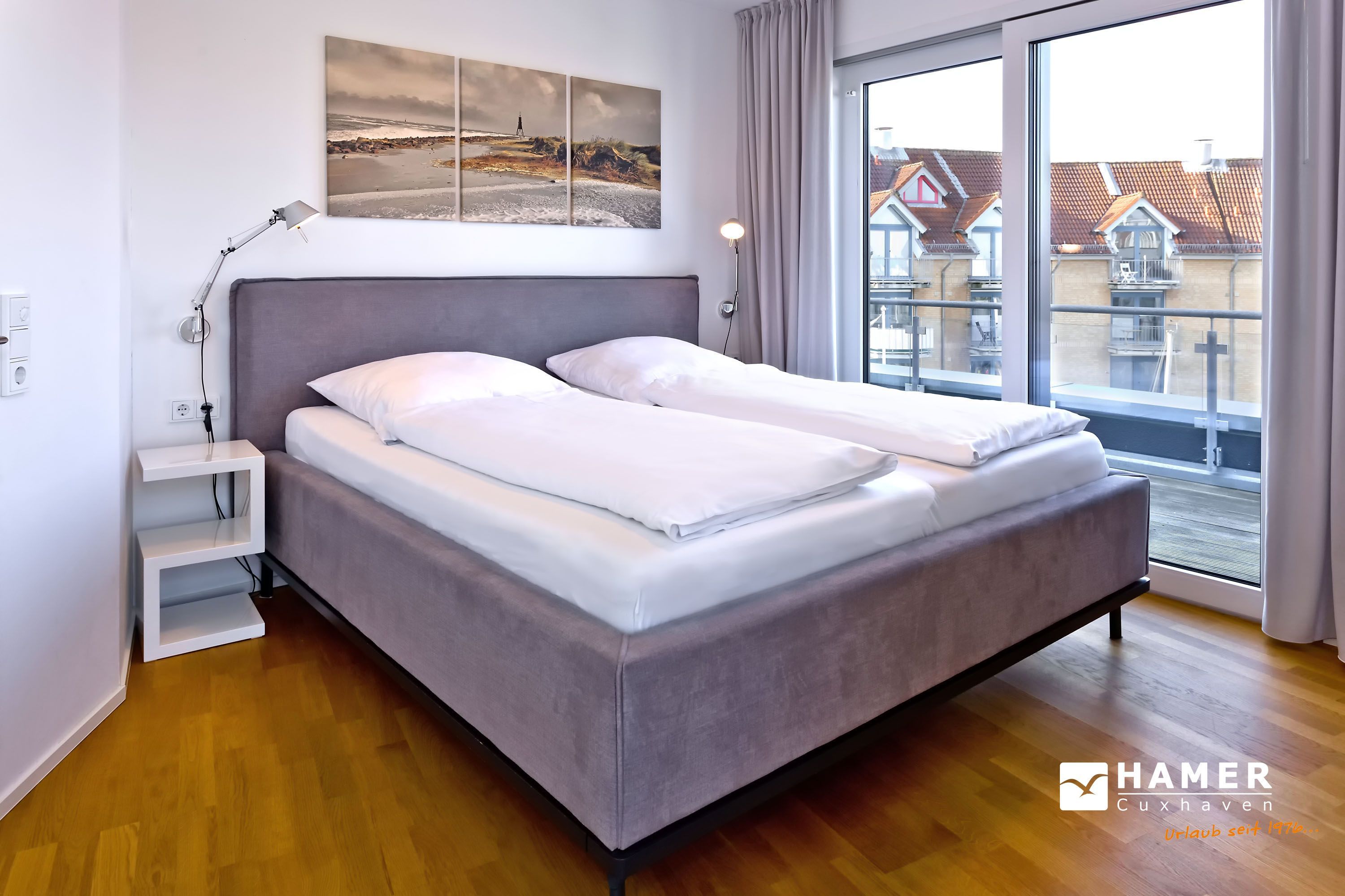 Tolles Penthouse in der City-Marina! 3-Raum-Wohnung für max. 3 Pers. in der 3.Etage mit umlaufenden Balkon (Nord, West, Ost) und durchgehend Sonne. Zugang über Fahrstuhl und vollständig barrierefreie Wohnung. Durch kostenloses WLAN und Schreibtisch „Workation“ geeignet. Vollausgestattete Küchenzeile mit Backofen, Geschirrspüler, Mikrowelle, Senseo, etc.. Wohnzimmer, 3xTV, 1 Schlafzimmer mit Doppelbett, 1 Schlafzimmer mit Einzelbett, 2 Badezimmer mit ebenerdigen Duschen, WC, Föhn, Waschmaschine i.d. Wohnung. Alle Fenster verfügen über elektr. Rollläden, Balkonmöbel (Tisch und Stühle), Liegen und Polster für die Nutzung des umlaufenden Balkons. Stellplatz #7 am Haus, großer separater Abstellraum für Fahrräder mit E-Bike Lademöglichkeit , keine Haustiere und natürlich Nichtraucher