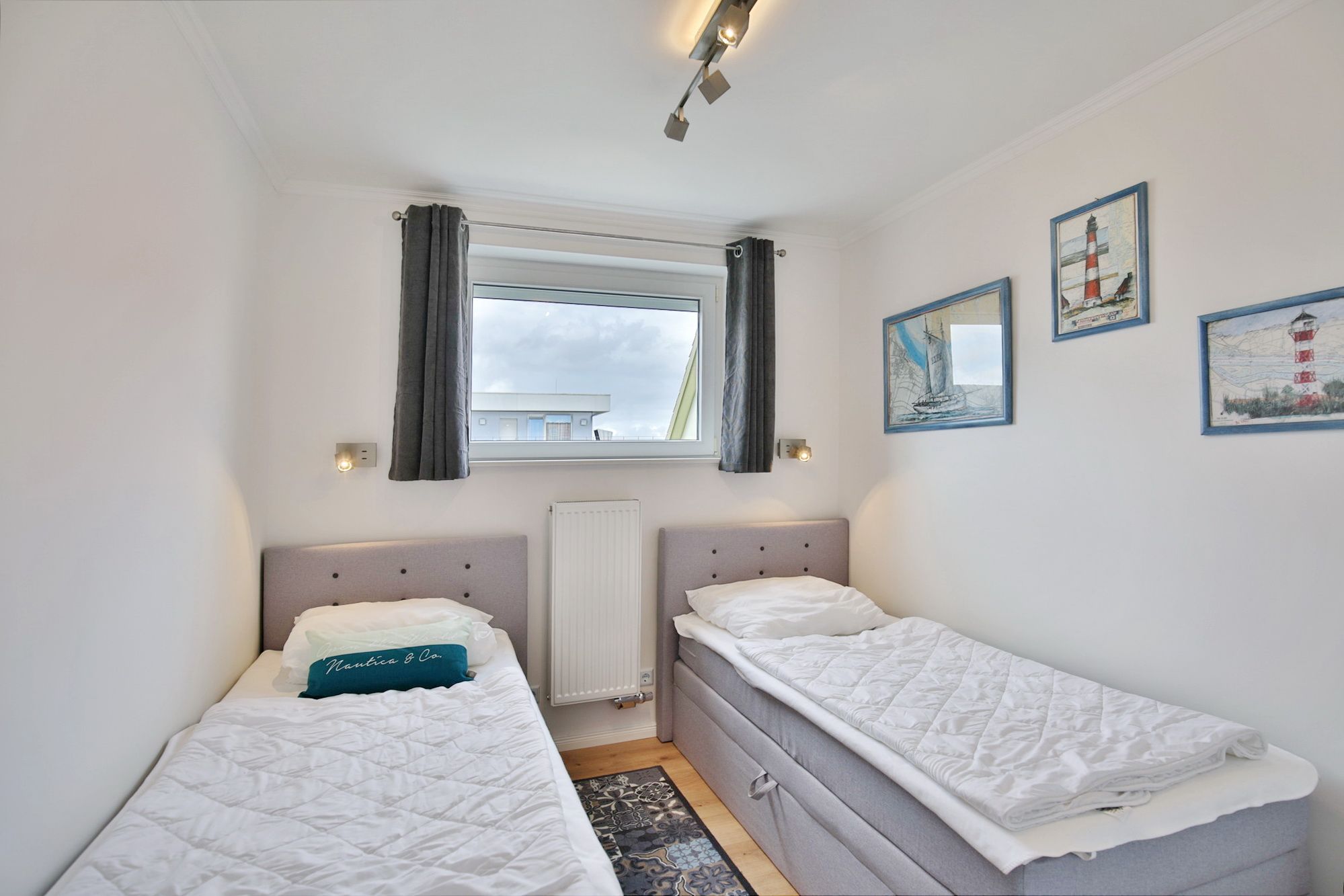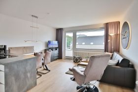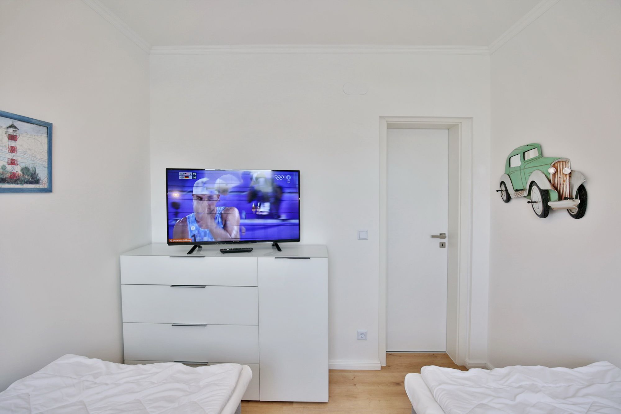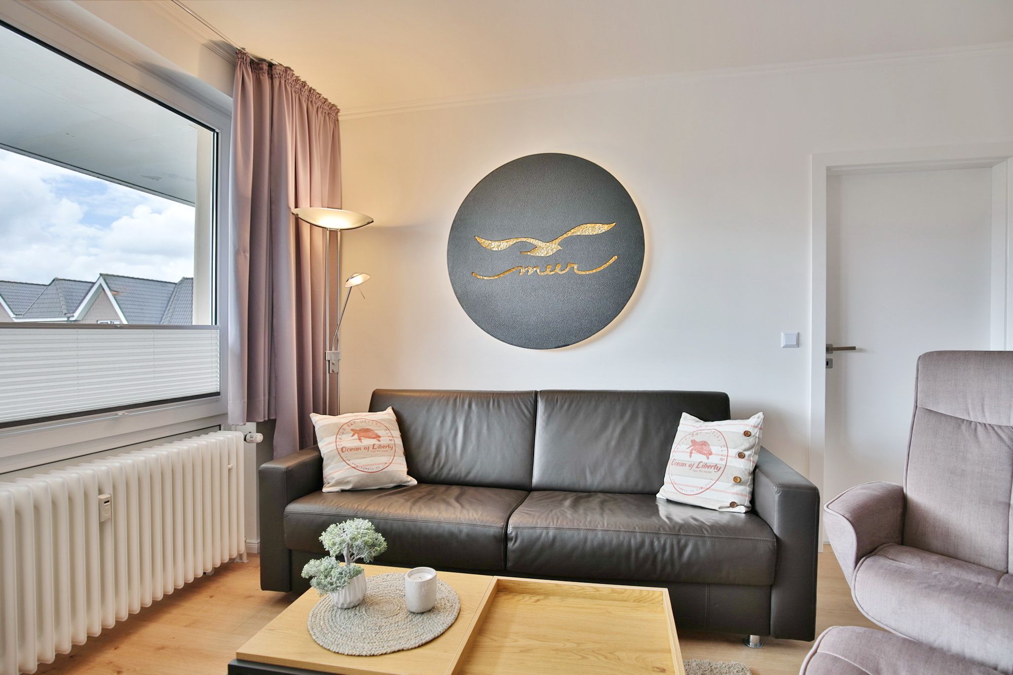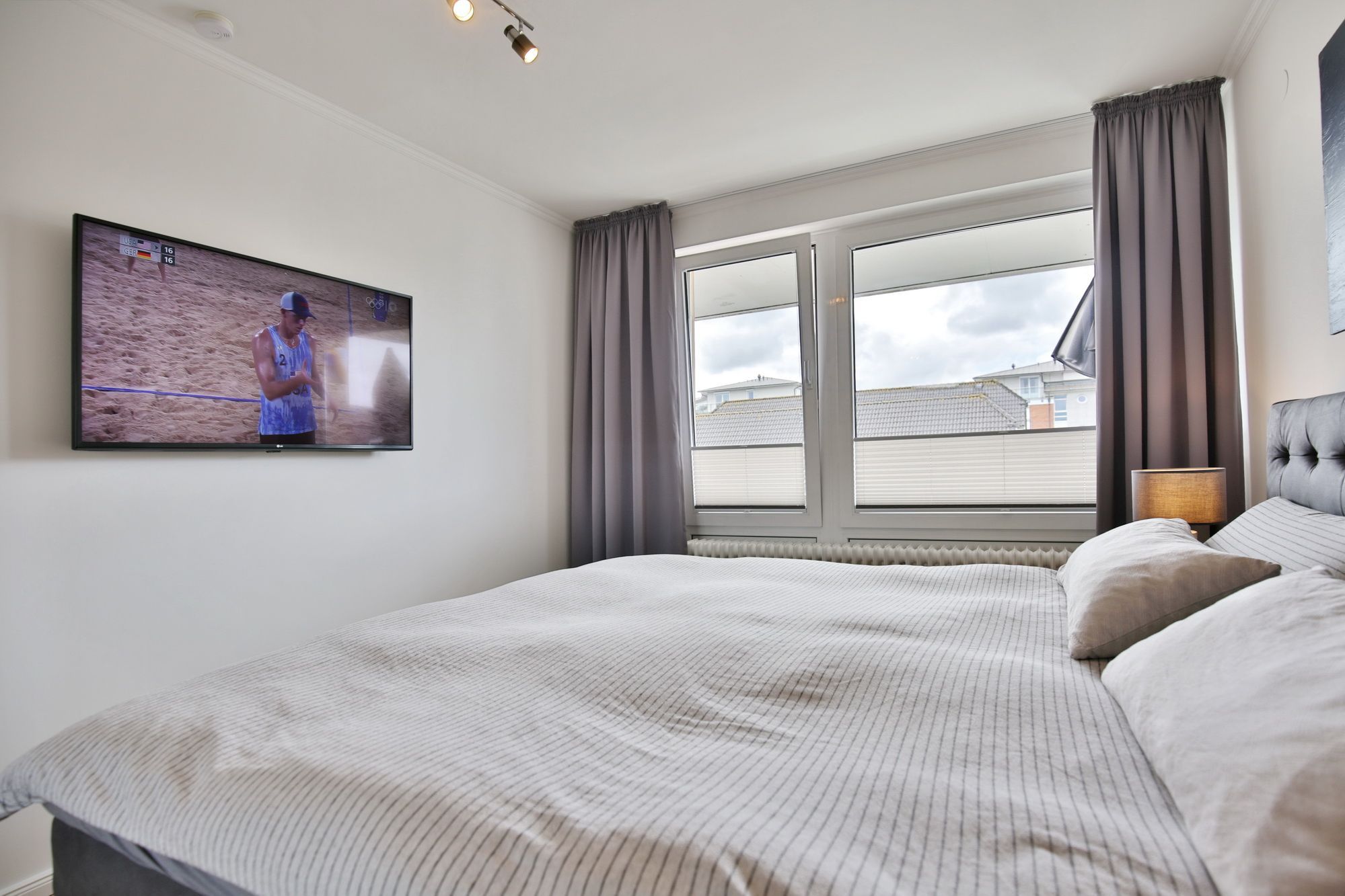Tolle, moderne 3-Raum-Wohnung bis 4 Pers mit Teilseesicht in bester Lage. (60m²), 2.Etage, 1 Schlafzimmer mit Doppelboxspringbett & TV, 1 Schlafzimmer mit 2 Boxspringeinzelbetten & TV, Dusche/WC, Wohnzimmer mit schöner offener Küchenzeile (Back., Mikrow., Geschirrspüler) 3xSAT-TV, HiFi-Anlage, W-LAN kostenlos, 1 großer Balkon (west mit Teilseesicht), Balkontür und Fenster mit hochwertigem Mückenschutzsystem versehen, Pkw-Stellplatz #23 vor dem Haus, Nichtraucher.