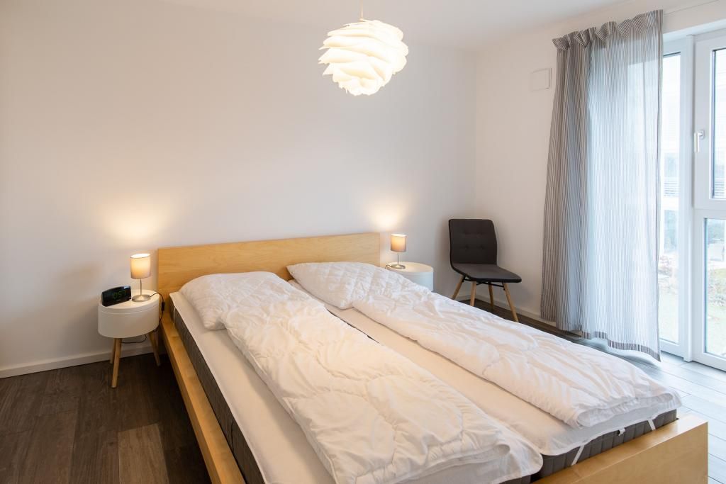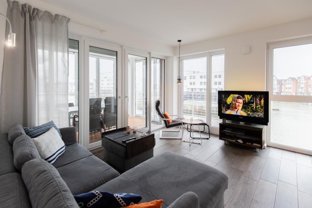 Sehr schöne 3-Zimmer-Wohnung über ca. 75m² auf der 1.Etage (Personenaufzug) und dem tollen Blick in den Hafen für max. 4 Pers.. 1 Schlafzimmer mit Doppelbett, 1 Schlafzimmer mit ausziehbaren Bett u. TV, ebenerdige Dusche/WC, Wohnzimmer mit vollausgestatteter Küchenzeile (Back., Geschirrspüler) TV, kostenloses W-LAN in der Wohnung, großer Balkon (süd/west) mit Loggia und Loungemöbeln, reservierter Pkw-Stellplatz im Carport #4, keine Haustiere gestattet, Nichtraucher.