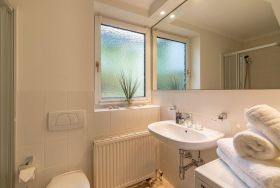 Über die Südterrasse gelangen Sie durch die typisch friesische Klöntür direkt in den gemütlich und offen gestalteten Wohn-Essbereich mit großen Fensterfront nach Süden. Die voll ausgestatteter Küchenzeile nebst Essplatz für Vier, Kachelofen und Sofa samt TV laden zum Verweilen ein. Im Obergeschoss erwartet Sie ein Doppelschlafzimmer mit raffinierten Einbauschränken und einem Wannenbad en suite. Von hier erfreut Sie der Ausblick gen Süden vorbei am Kampener Leuchtturm Langer Christian bis nach Wenningstedt. Das Untergeschoss hält ein weiteres Doppelschlafzimmer mit Tageslicht, TV und großem Kleiderschrank, sowie ein Duschbad samt Waschtrockner bereit. Das gesamte Quartier ist mit Natursteinböden und Böden in Holzoptik ausgestattet. Ein durch und durch gemütliches Heim für entspannte Urlaube.