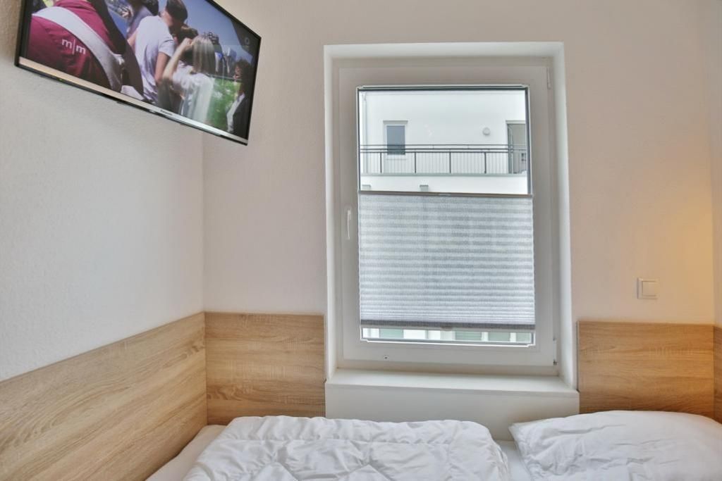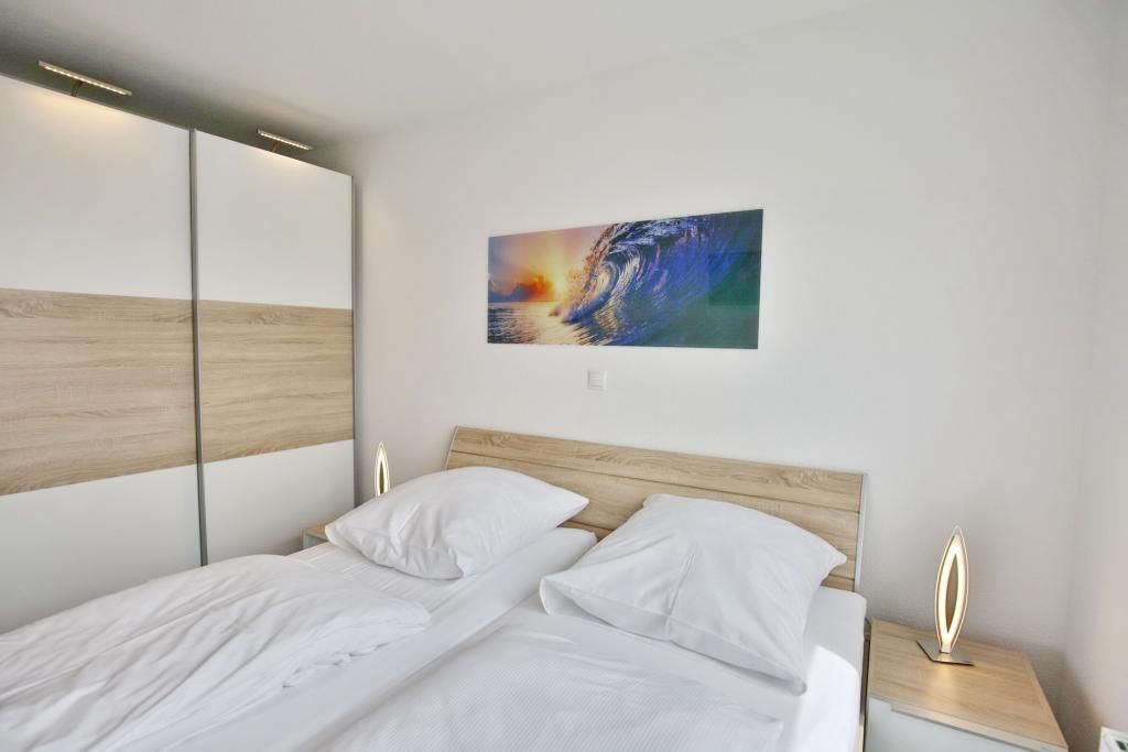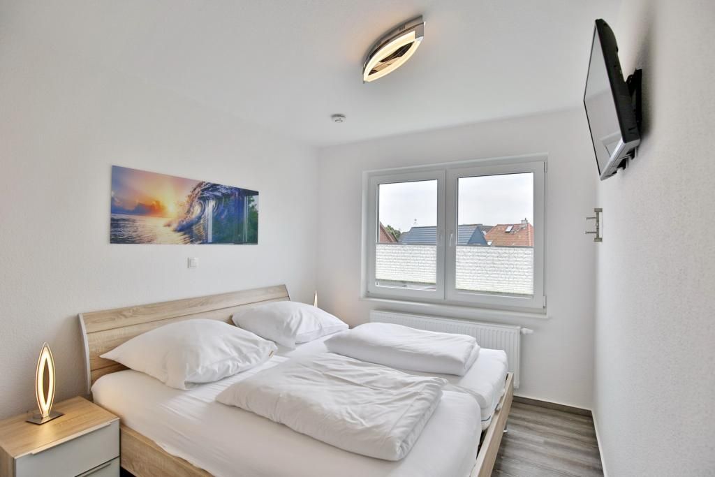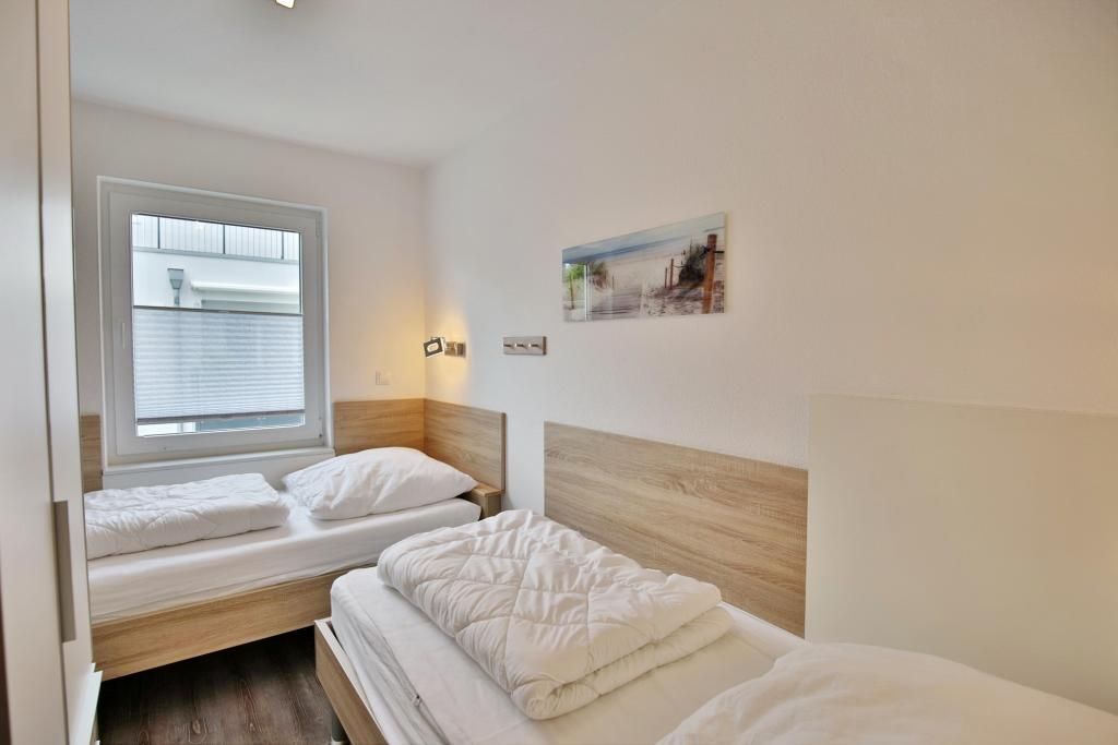 Moderne 3-Raum-Wohnung bis 4 Pers. auf der 2.Etage, 1 Schlafzimmer mit Doppelbett, TV und Außenjalousien, 1 Schlafzimmer mit 2 Einzelbetten und Außenjalousien, Wohnzimmer mit vollausgestatteter Küchenzeile (Back., Mikrow., Geschirrspüler) 3xSAT-TV, Sonoro-HiFi-Anlage, Blue-Ray-DVD, kostenfreies W-Lan, sonniger Balkon (süd/west), Dusche (ebenerdig) mit WC, Personenaufzug, Pkw-Stellplatz #10 in ebenerdiger, großzügiger Doppelgarage, keine Haustiere erlaubt, Nichtraucher.