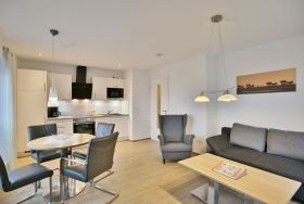 Schöne 2-Raum-Wohnung, zentrumsnah in Duhnen (1. Etage). Vollständige Küchenzeile mit Mikrow., Back., Geschirrspüler etc. Wohnzimmer mit Balkon (nord/west), 2x SAT-TV, Stereoanlage, kostenfreies W-Lan, separates Schlafzimmer mit Außenjalousien, allergikerfreundlich, ebenerdige Dusche/WC, Föhn, reservierter Pkw-Stellplatz in der Tiefgarage, keine Haustiere und natürlich Nichtraucher.