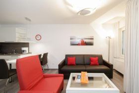 Hochwertig ausgestattete 2-Raum-Wohnung, zentrumsnah in Duhnen (1. Etage). Vollständige Küchenzeile mit Mikrowellen-Back-Kombination, Geschirrspüler etc. Wohnzimmer mit Balkon (west), Schlafcouch, 2x SAT-TV & DVD-Player, Stereoanlage, kostenfreies W-Lan, separates Schlafzimmer mit Außenjalousien, allergikerfreundlich, ebenerdige Dusche/WC, reservierter Pkw-Stellplatz in ebenerdiger Doppelgarage #6, eigener Kellerraum mit Lademöglichkeit für eBikes, keine Haustiere gestattet und natürlich Nichtraucher.
