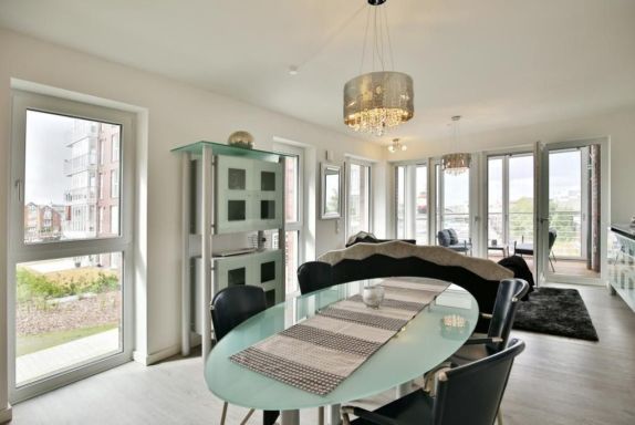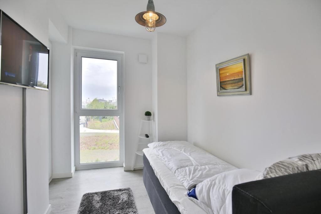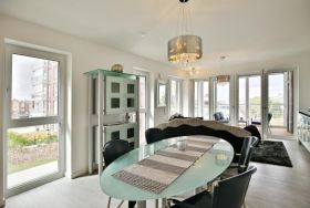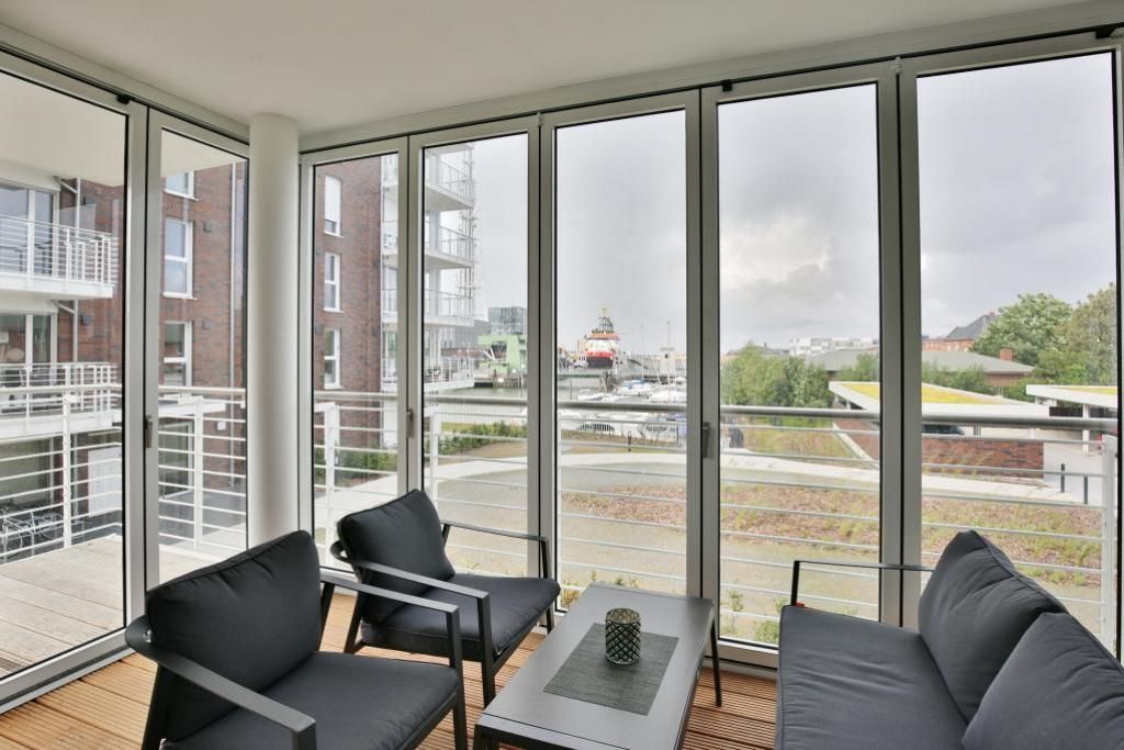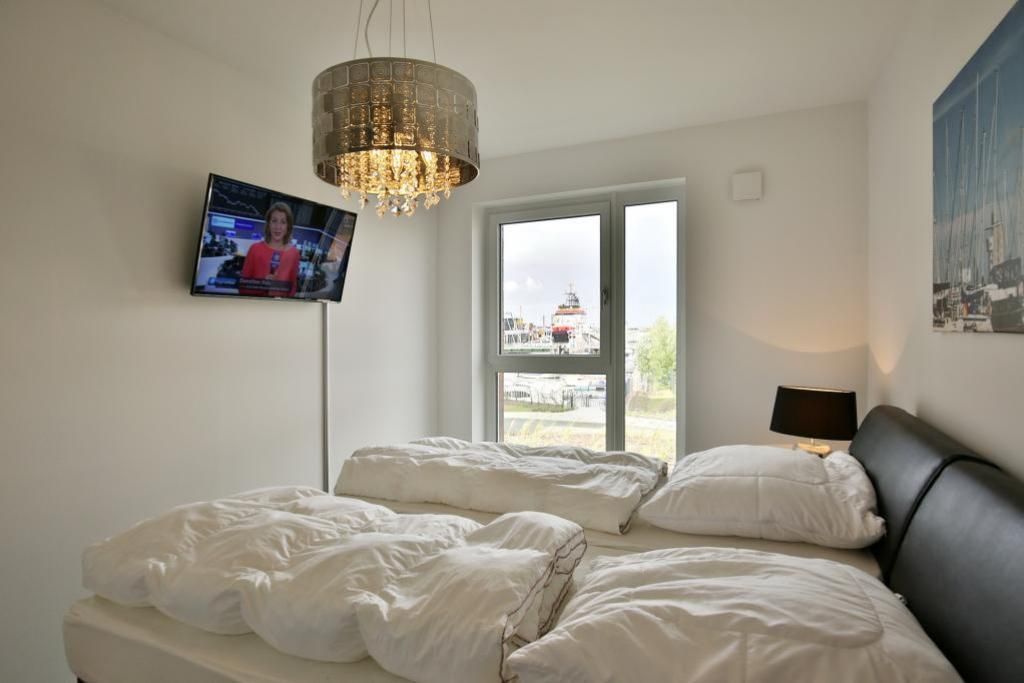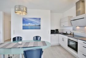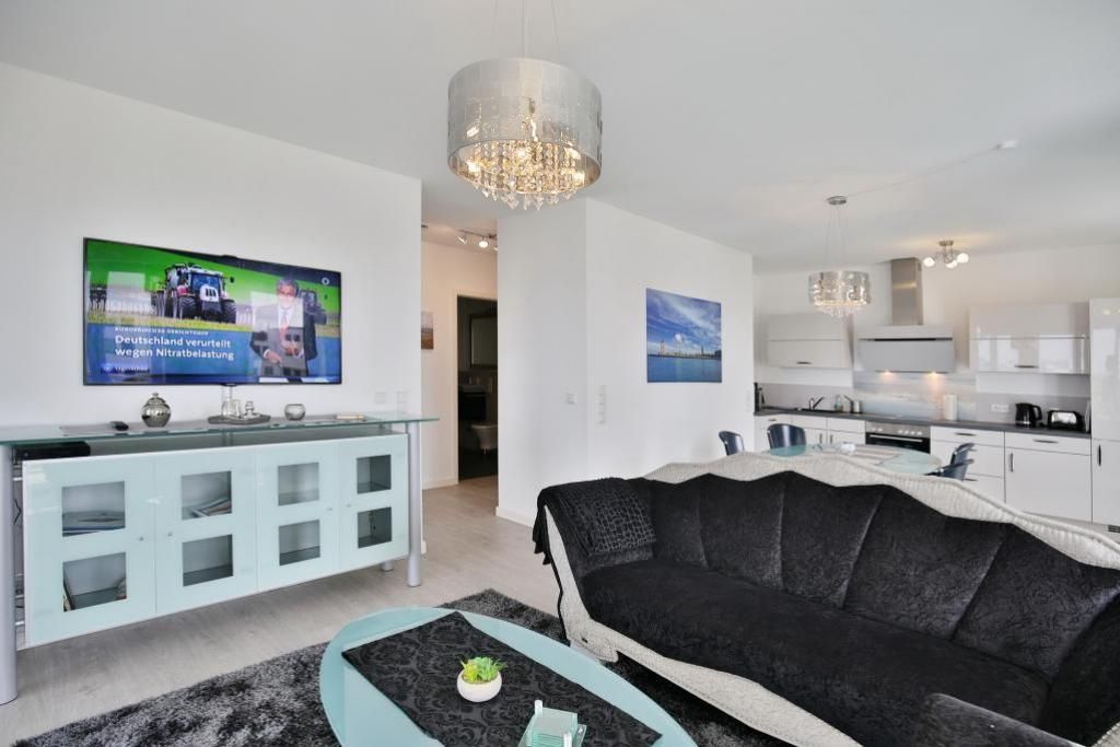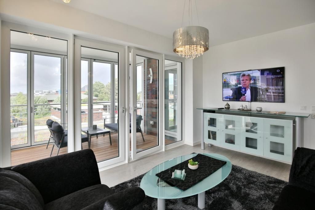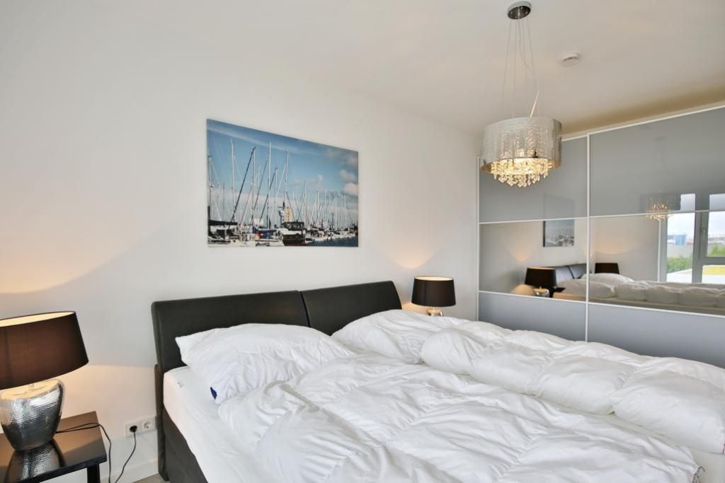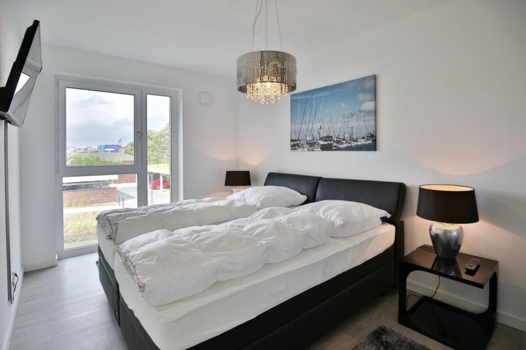 Haus Kapitän Alexander, direkt an der Marina Cuxhaven gelegene Neubauwohnung über ca. 75m². Tolle 3 Zimmer-Luxus-Wohnung in der 1. Etage mit Seesicht für max. 3 Pers. ausgestattet, großzügiges Wohnzimmer mit großem Balkon (nord/west). Der Balkon ist teilweise windgeschützt als Loggia zu nutzen.Vollständig ausgestattete Küchenzeile, 1 Schlafzimmer mit Doppelbetten und 1 Schlafzimmer mit einem bequemen Einzelbett, alle Räume sind mit elektr. Außenjalousien verdunkelbar, 3xTV, kostenfreies W-Lan-Internet, ebenerdige Dusche/WC, reservierter Pkw-Stellplatz in der Tiefgarage #15, Nichtraucher und es sind keine Haustiere gestattet.