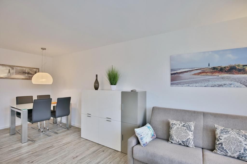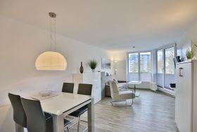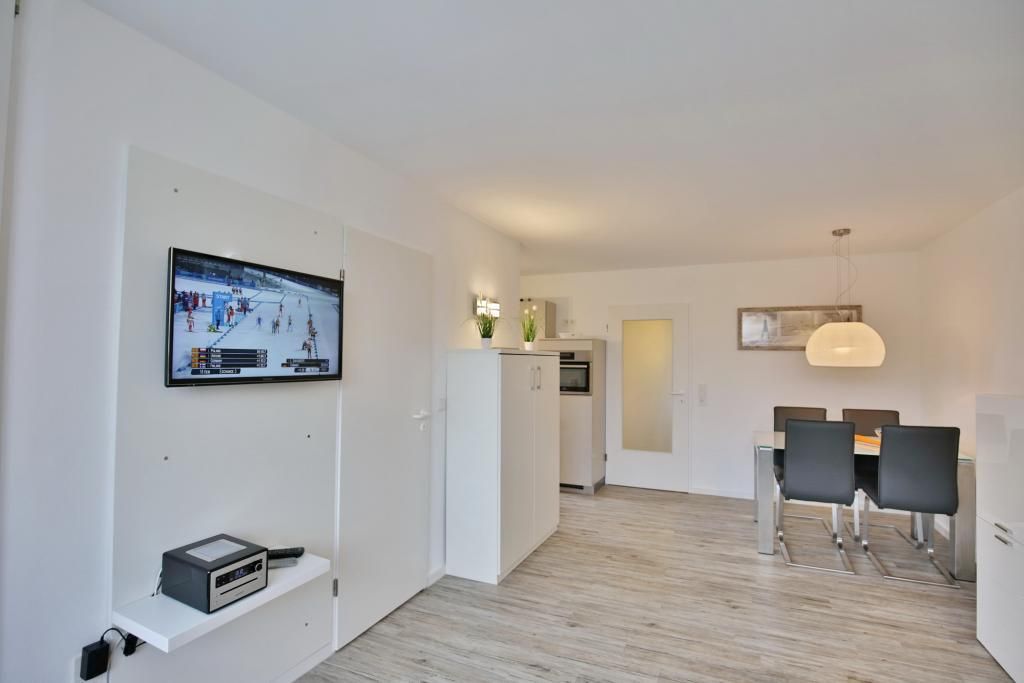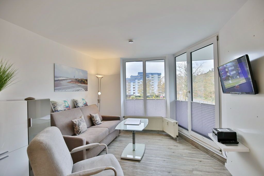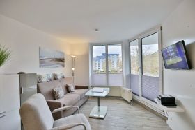 Neu renovierte 2-Raum-Eckwohnung mit 42m² auf der 2. Etage. Komplett ausgestattet bis 3 Pers.. 1 Schlafzimmer mit 2 Einzelbetten (1,90m), 1 kombiniertes Wohn/Schlafzimmer mit Doppelbettcouch, Sat-TV, Sonoro-HiFi-Anlage, kostenloses W-Lan. Komplette Küchenzeile mit Geschirrspüler, Mikrowelle & Ceranfeld, Tageslichtbad mit Dusche/WC, Flur, Balkon (west) mit Balkonmöbeln und Sonnenschirm (saisonabhängig). PKW-Stellplatz #202 in der Tiefgarage. Natürlich Nichtraucher & keine Haustiere.