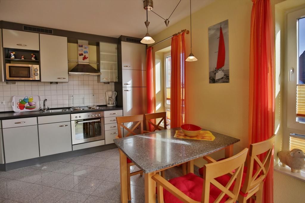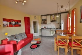 Sehr schöne, helle 3-Raum-Maisonette-Wohnung auf ca. 60m², 1.Etage, 1 Schlafzimmer mit Doppelb., 1 Schlafzimmer im Dachgeschoss mit 2 Einzelbetten und TV, separates WC mit Waschbecken, Wohnzimmer mit Küchenzeile (Backofen, Mikrowelle, Geschirrspüler, Gefrierfach) Kabel-TV/Stereo, kostenloses W-LAN Internet, Dusche/WC, großer Balkon (süd) mit Markise. Die Wohnung ist komplett gefliest, keine Haustiere, Nichtraucher!