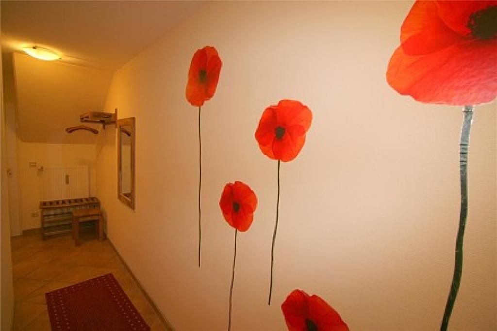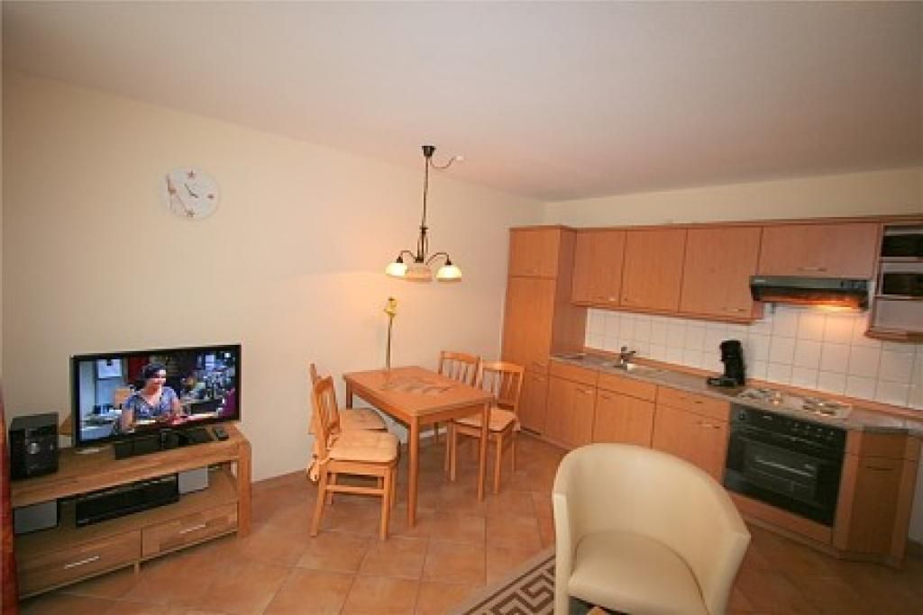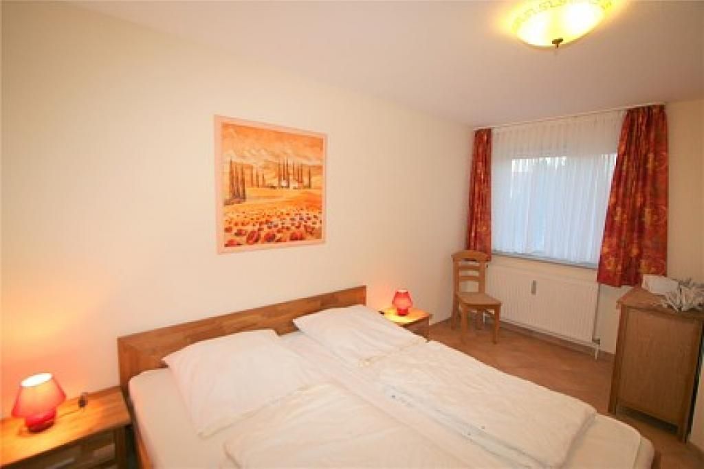 2-Raum-Parterrewohnung mit ca. 52m², komplett ausgestattet bis 4 Pers., 1 Schlafzimmer mit Doppelbett, 1 kombiniertes Wohn/Schlafzimmer mit Doppelbettcouch, alles gefliest, Kabel-TV, DVD, Radio/CD, W-Lan kostenfrei, Terrasse (west), Du/WC (neu in 2015), Küchenzeile mit 4 Pl., Backofen, Mikrowelle, Geschirrspüler, Senseo, Gefrierfach, Flur, Abstellraum, keine Haustiere, Nichtraucher, Pkw-Stellplatz