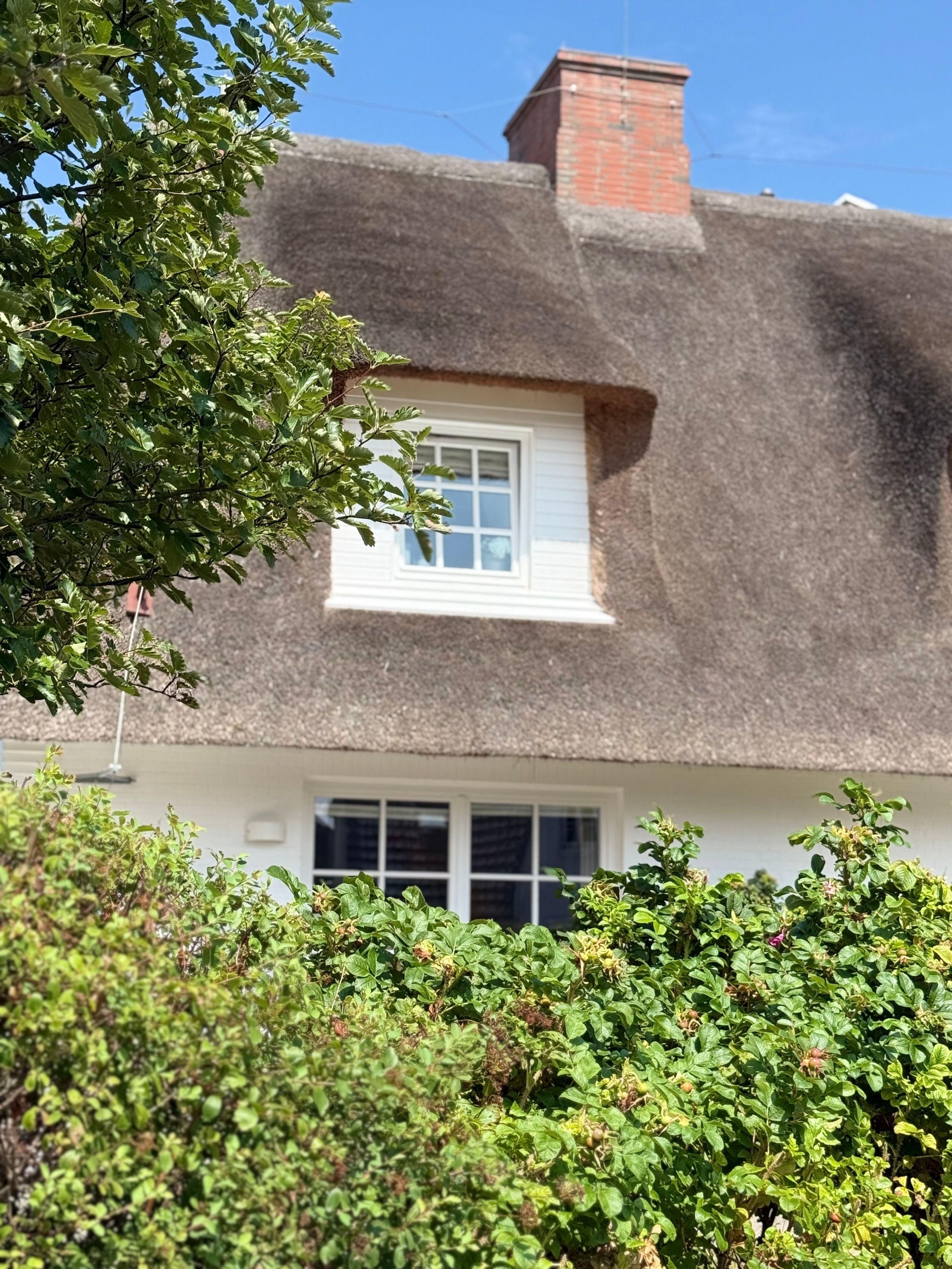 Wir haben seit 2024 ein komplett neu eingedecktes Reetdach. Wunderschön!