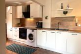 Diese charmante Ferienwohnung bietet eine ideale Unterkunft mit komfortabler Ausstattung für bis zu sechs Personen. Sie verfügt über zwei Schlafzimmer, davon eines mit Doppelbett und eines mit vier Einzelbetten. Die offen gestaltete Küche ist mit einem Elektro-/Gasherd, Backofen, Mikrowelle und Kühlschrank ausgestattet und bietet zudem moderne Annehmlichkeiten wie eine Kaffeemaschine, Toaster und Gefriermöglichkeit. Ein Esstisch lädt zu gemeinsamen Mahlzeiten ein.