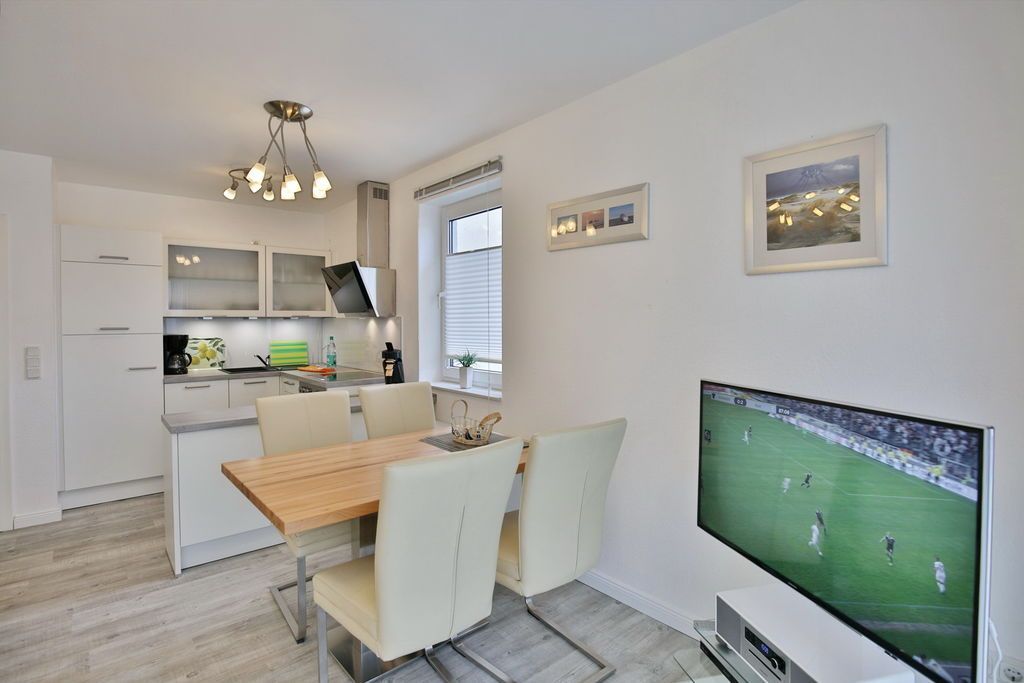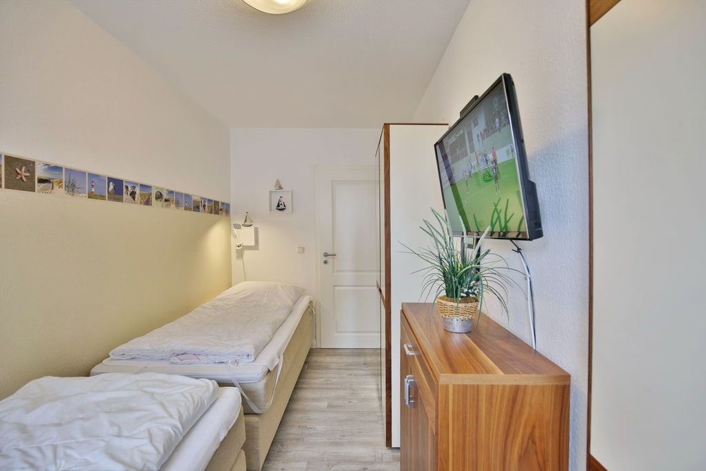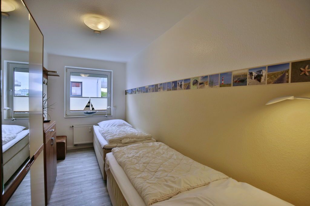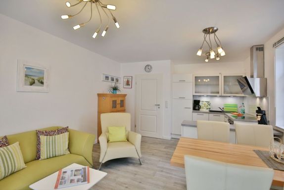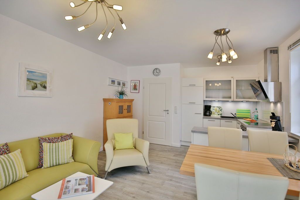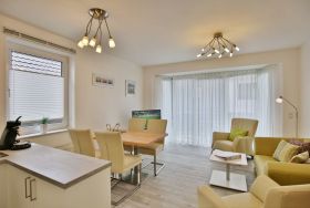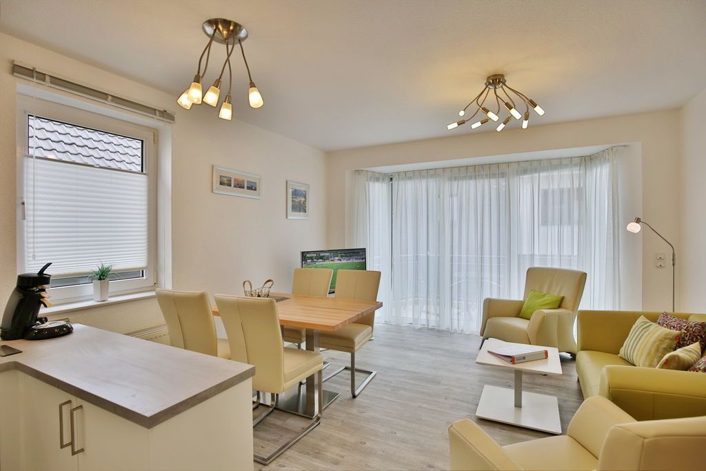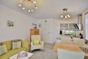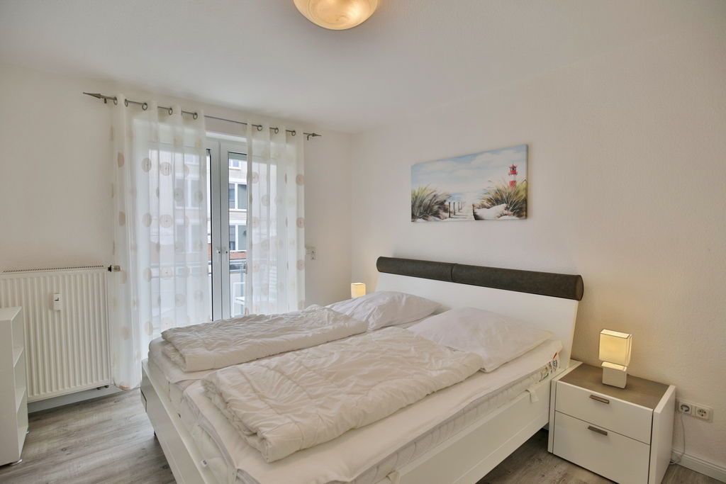 Moderne, helle 3-Raum-Wohnung, 1. OG, größtenteils neu möbliert, ca.58m², 1 Schlafzimmer mit Doppelbett, 1 Schlafzimmer mit zwei Boxspringbetten, beide SZ mit elektrischen Außenrollläden, Wohnzimmer mit kompletter Küchenzeile (Geschirrspüler, Mikrow., Back., Senseo-Kaffeem.), 2xKabel-TV, BluRay-DVD, Sonoro-Stereo-Anlage, Dusche/WC mit Fenster, Föhn, 2 Balkone (1x mit Teilseesicht), kostenloses W-LAN Internet, reservierter Stellplatz in der Tiefgarage #16, Nichtraucherwohnung, Haustiere nicht gestattet.