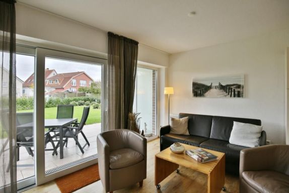 Geschmackvoll und vollständig ausgestattete Wohnung auf ca. 47m² bis 2 Pers., parterre, 1 Schlafzimmer mit Doppelbett, Wohnzimmer mit großer Terrasse (Süd), 2x SAT-TV (3D), Blue-Ray,CD, W-LAN kostenlos, vollständige Küchenzeile mit Geschirrspüler, Mikrowelle, Backofen, Gefrierfach, Dusche/Wc, Föhn, alle Räume mit Rollladen, Nichtraucher, Pkw-Stellplatz #1, keine Haustiere gestattet.