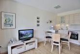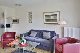 Schöne, helle 2-Raum-Wohnung auf ca. 47m² bis 2 Pers., parterre mit großer Terrasse mit Strandkorb und Rasenanteil (süd), 1 Schlafzimmer mit Doppelbett, Wohn-/Schlafzimmer mit Schlafcouch, 2xSAT-TV, W-LAN kostenlos, vollständige Küchenzeile mit Geschirrspüler, Mikrowelle, Backofen, Gefrierfach, Dusche/Wc, alle Räume mit Rollladen, Nichtraucher, Pkw-Stellplatz #2, keine Haustiere gestattet.