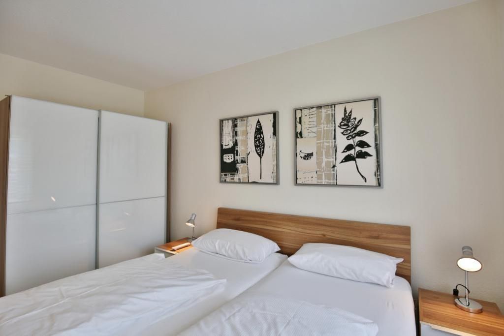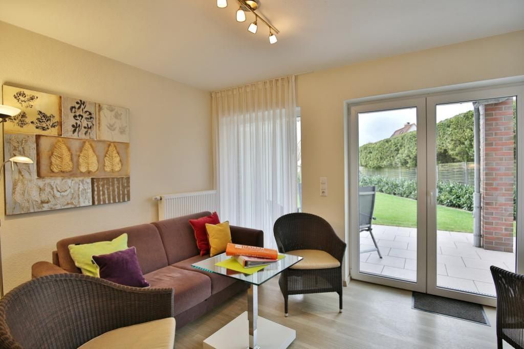 Schöne und vollständig ausgestattete Wohnung auf ca. 47m², parterre mit Terrasse und Rasen (süd), 1 Schlafzimmer mit Doppelbett, Wohn-/Schlafzimmer mit guter Schlafcouch, 2xSAT-TV, DVD, W-LAN kostenlos, vollständige Küchenzeile mit Geschirrspüler, Mikrowelle, Backofen, Gefrierfach, Du/Wc, alle Räume mit Rollladen, Nichtraucher, Pkw-Stellplatz #4, keine Haustiere gestattet.