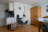 Die Einzimmerwohnung liegt im Erdgeschoss und bietet auf 18m² eine Kombination aus Wohn- und Schlafraum. Im Schlafbereich befindet sich ein Einzelbett (90x200) und ein geräumiger Schrank. Eine integrierte Küchenzeile befindet sich ebenfalls im Raum, sowie ein kleiner Esstisch. Außerdem ist ein TV sowie ein Radiowecker vorhanden. Angrenzend liegt ein separates Badezimmer mit Dusche, WC und Föhn.