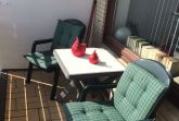 Die Loggia des Appartementes ist sehr geräumig und bietet zwei bequeme Sessel und einen Balkontisch. Sie genießen vom 6. Stock einen herrlichen Blick über Westerland in Richtung Wattenmeer.