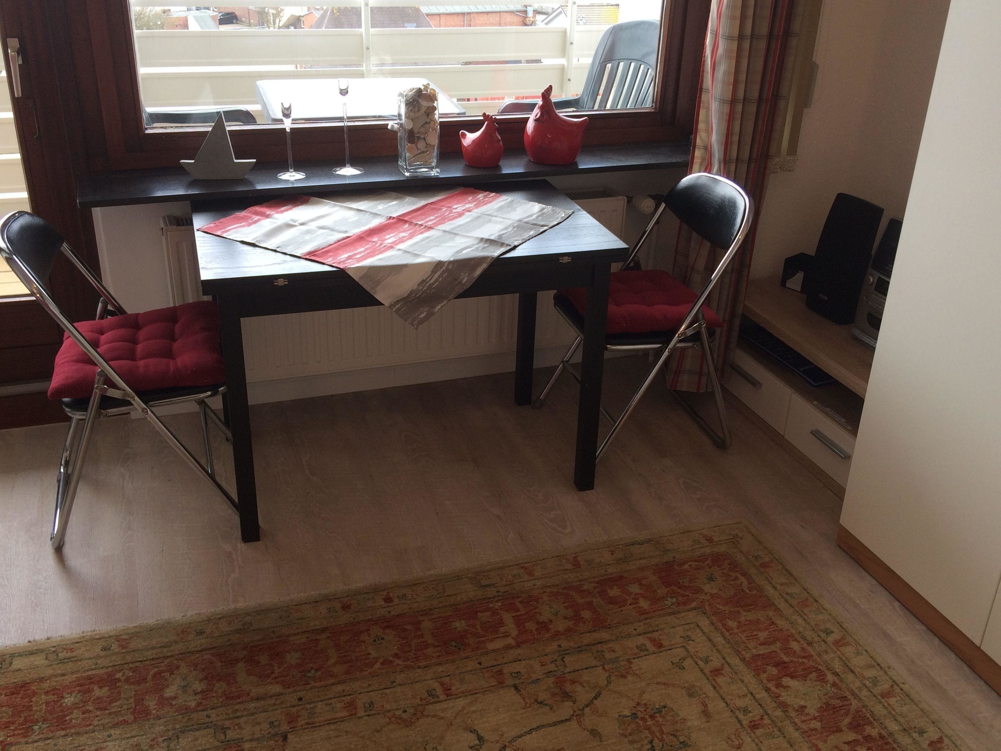 Das Appartement wurde für Feriengäste optimal ausgestattet. Das Wohn-Schlafzimmer ist hell und geräumig. Moderne Schrankklappbetten sorgen tagsüber für Platz und nachts für einen guten Schlaf. Gemütlich wird es auf dem roten Sofa oder dem geschützten und überdachten Balkon. Vom Essplatz aus genießne Sie den Aufgang der Sonne und den Weitblick in Richtung Festland. Selbstverständlich verfügt das Appartement über eine Stereoanlage und einen Flachbildschirmfernseher sowie über WLan.