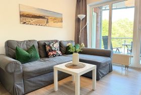 Die Ferienwohnung bietet ein modernes und komfortables Ambiente, ideal für alle, die einen entspannten Aufenthalt suchen. Sie verfügt über zwei Schlafzimmer: eines mit einem Doppelbett und das andere mit drei Einzelbetten. Zusätzlich befindet sich im Wohnschlafzimmer eine Schlafcouch, die zur flexiblen Belegung einlädt.
