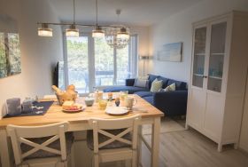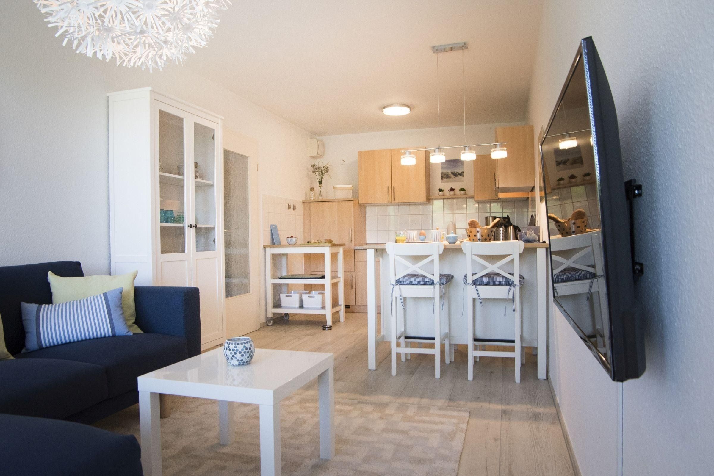 Die Ferienwohnung bietet eine entspannende Atmosphäre, ideal für ruhige Auszeiten. Sie überzeugt mit lichtdurchfluteten Räumen und moderner Ausstattung. Die vollständige Ausstattung der Küche ermöglicht das Selbstkochen, während der einladende Wohnbereich zu geselligen Abenden einlädt. Optimal gelegen, ist sie der perfekte Ausgangspunkt für Erkundungen in der Umgebung und unvergessliche Erlebnisse.