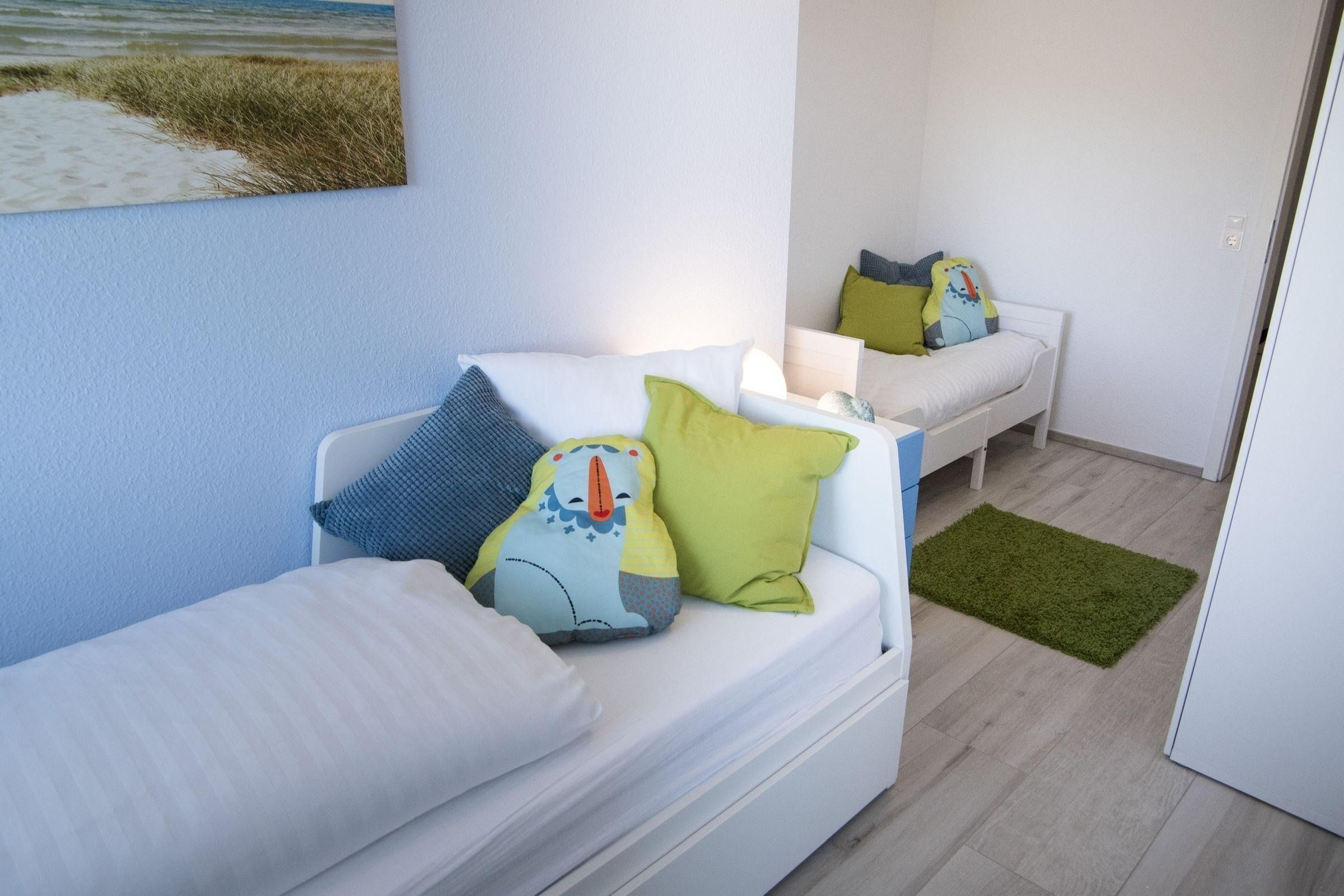 Die Ferienwohnung bietet eine großzügige und allergikerfreundliche Raumgestaltung, die Entspannung und Komfort vereint. Sie verfügt über zwei Schlafzimmer, darunter ein Doppelbett und ein Einzelbett sowie ein Kinderbett. Das Wohnschlafzimmer mit Schlafcouch lädt zum Verweilen ein. Die offene Küche ist vollständig ausgestattet mit einem Geschirrspüler, Elektro- und Gasherd, Backofen, Mikrowelle, Kühlschrank, Gefriermöglichkeit und Kaffeemaschine. Für gesellige Abende steht ein Esstisch bereit. Das moderne Duschbad ist komfortabel eingerichtet und bietet einen Haartrockner sowie eine Badewanne zur Entspannung. Zur Unterhaltung sind eine HiFi-Anlage und ein TV vorhanden. Die Wohnung ist mit WLAN ausgestattet und verfügt über praktische Annehmlichkeiten wie eine Waschmaschine, Wäschetrockner und einen Fahrstuhl. Brettspiele sorgen für weitere Unterhaltung. Dies ist der ideale Rückzugsort für eine erholsame Auszeit.