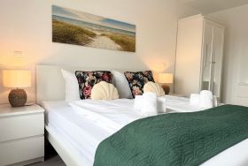 Die Ferienwohnung bietet ein ansprechendes Ambiente mit zwei Schlafzimmern, ausgestattet mit einem Doppelbett und zwei Einzelbetten. Das Wohnschlafzimmer verfügt zusätzlich über eine Schlafcouch, ideal für entspannte Abende. Die separate Küche ist modern und vollständig ausgestattet: Sie umfasst einen Geschirrspüler, Elektro-/Gasherd, Backofen, Mikrowelle, Kühlschrank mit Gefriermöglichkeit, Kaffeemaschine sowie Toaster und Wasserkocher. Das Badezimmer ist mit einer Dusche und einer Badewanne ausgestattet und enthält einen Haartrockner. Zur weiteren Ausstattung gehören WLAN-Internet, eine HiFi-Anlage, TV, Waschmaschine, Wäschetrockner und zahlreiche Brettspiele für gesellige Stunden. Die Wohnung ist allergikergeeignet und bietet Stauraum durch Schränke und Kommoden sowie einen Esstisch. Ein Fahrstuhl erleichtert den Zugang, und Rauchmelder sowie eine Heizung sorgen für Sicherheit und Komfort. Die Unterkunft überzeugt somit durch ihre vielseitige Ausstattung und eignet sich perfekt für einen erholsamen Aufenthalt.