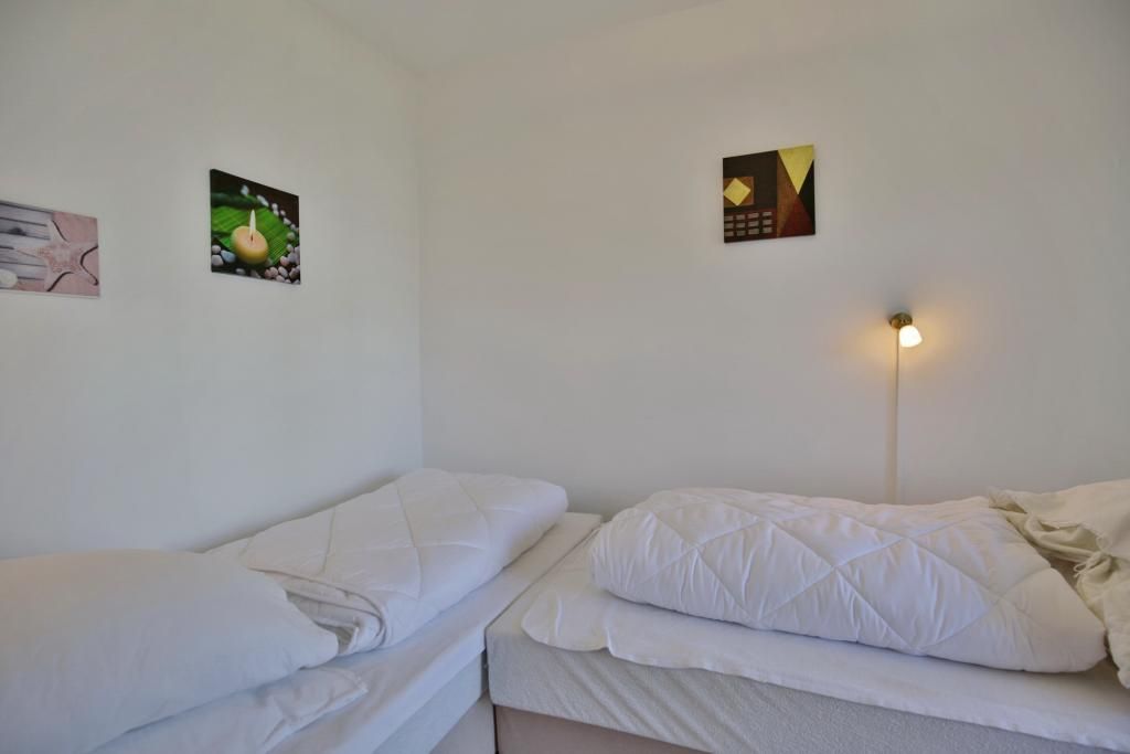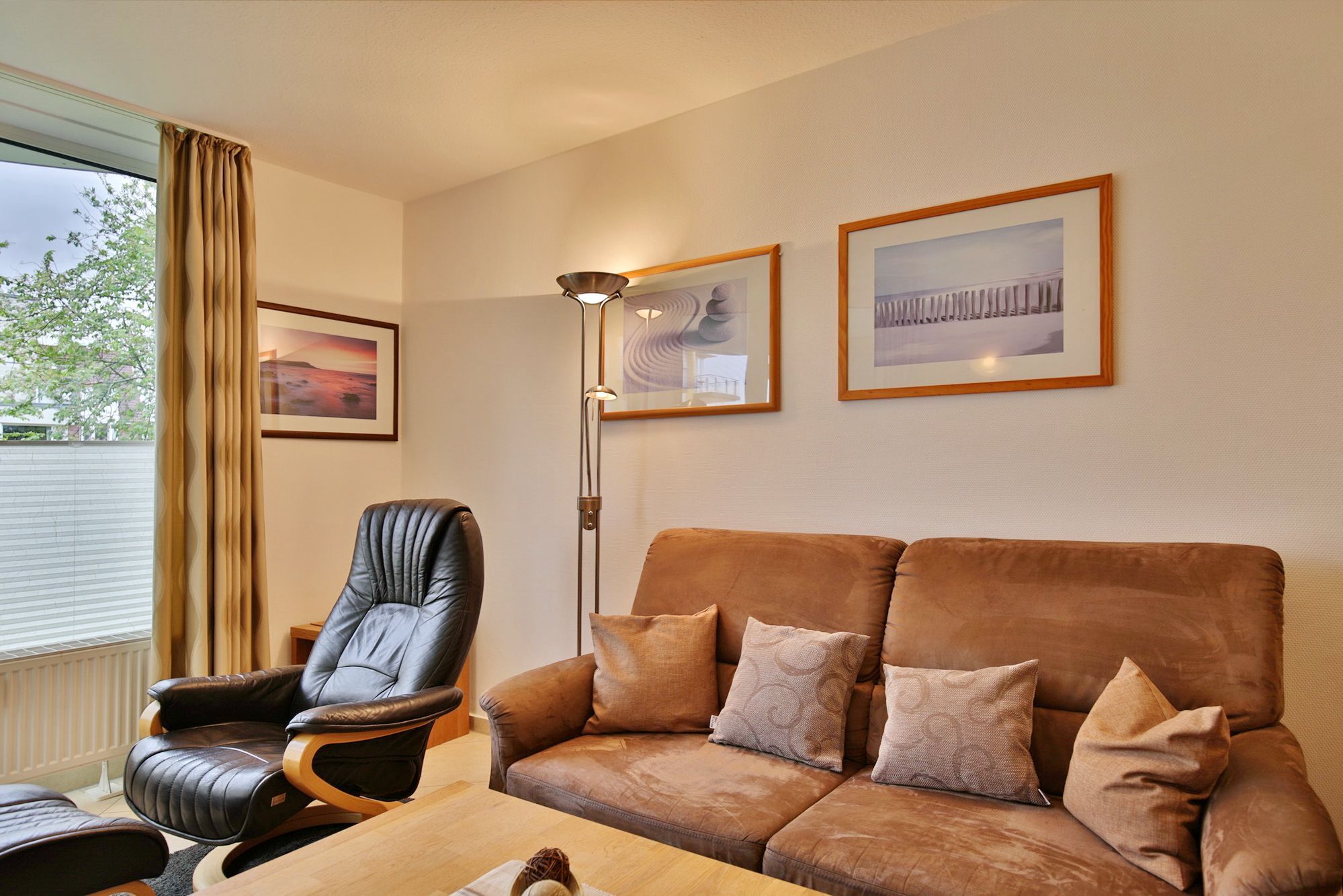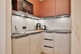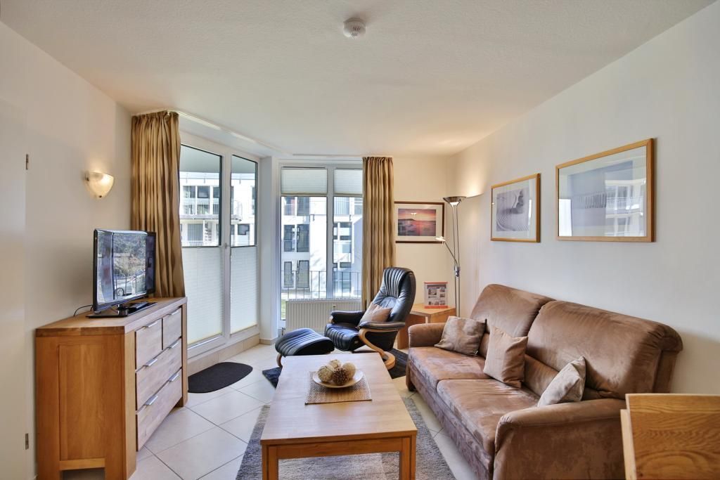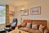 2-Raum-Wohnung auf ca. 40m², 1. Etage, komplett ausgestattet bis max. 4 Pers., 1 Schlafzimmer mit 2 Einzelbetten (2m u. 1,90m), 1 Wohn/Schlafzimmer mit Schlafcouch, SAT-TV, kostenloses W-Lan, alles gefliest, neue Küchenzeile mit Mikrowelle & Geschirrspüler, Dusche/WC, Flur, Balkon (ost) mit Sonnenschirm, Tiefgarage, Nichtraucher und keine Haustiere.