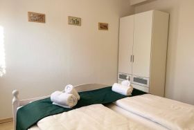 Die Ferienwohnung bietet Platz für bis zu 6 Personen und verfügt über zwei separate Schlafzimmer. Haustiere sind auf Anfrage erlaubt. Wäsche kann gegen Gebühr genutzt werden. Die Anreise- und Schlüsselübergabe erfolgt nach individuellen Absprachen.