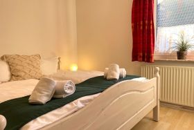 Die strandnahe Ferienwohnung im Erdgeschoss in Cuxhaven-Duhnen bietet komfortablen Platz für bis zu 6 Personen. Sie verfügt über zwei separate Schlafzimmer, jeweils mit einem Doppelbett, sowie ein Wohn-/Schlafzimmer mit einer Schlafcouch. Die Ausstattung ist optimal für einen erholsamen Aufenthalt gestaltet. Zu den gemeinschaftlich nutzbaren Einrichtungen zählen eine Waschmaschine und ein Wäschetrockner, die sich in der Garage befinden. Haustiere sind auf Anfrage willkommen. Diese Ferienwohnung ist ideal gelegen, nur einen kurzen Spaziergang vom Erlebnisbad Ahoi und dem langen Sandstrand entfernt. Die gemütliche Terrasse und der Garten laden dazu ein, die Zeit im Freien zu genießen.